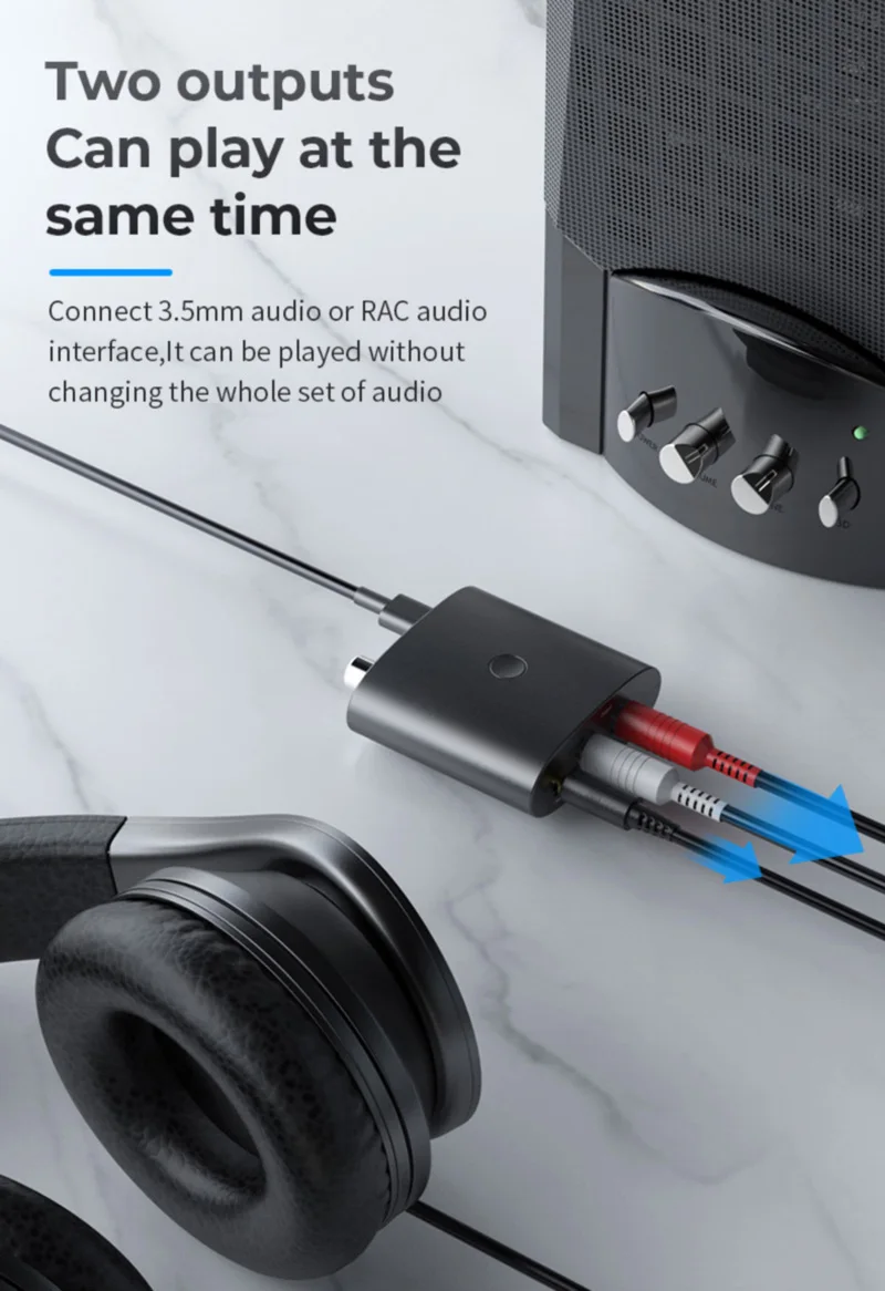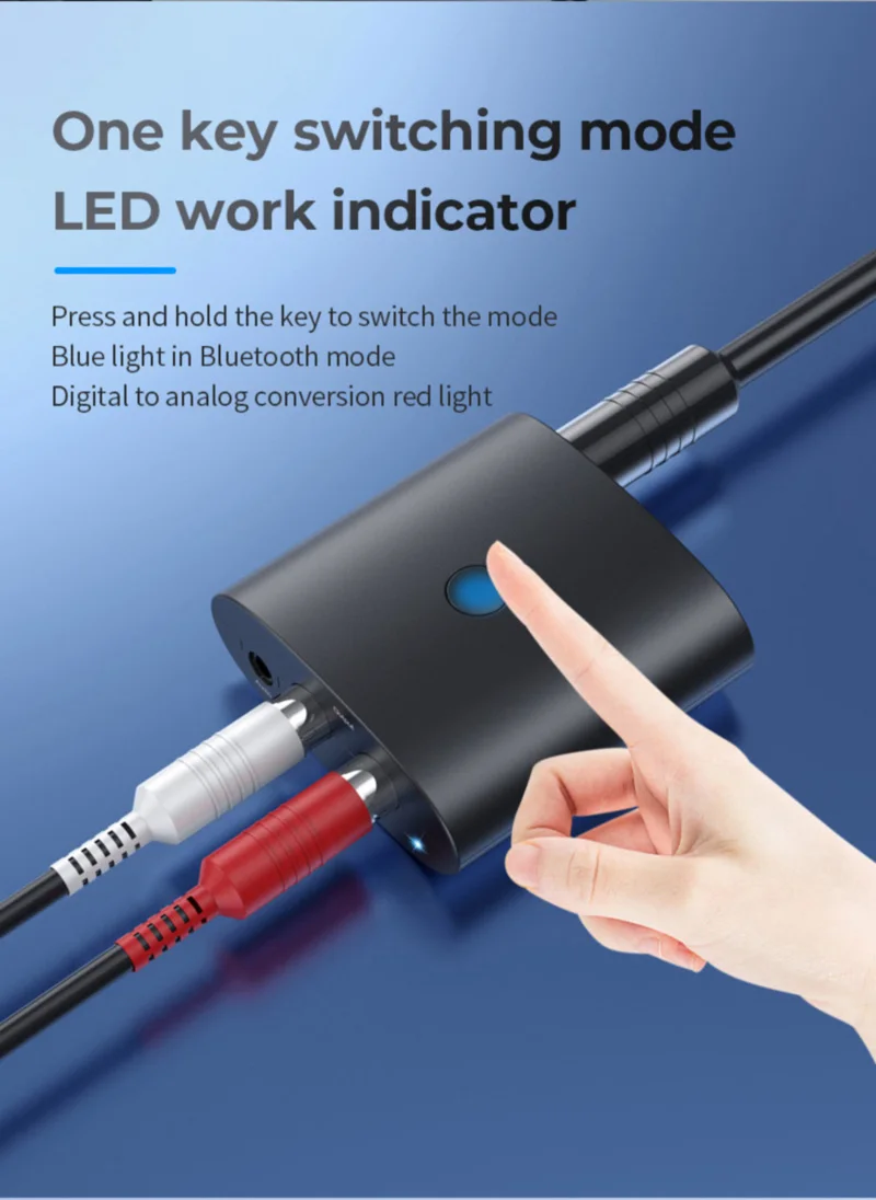 Y hemos actualizado el convertidor, tiene función de receptor de audio Bluetooth, por lo que puede usar su teléfono para emparejarse con su altavoz con cable/sistema de coche/auriculares con cable/amplificador a través de Bluetooth.
