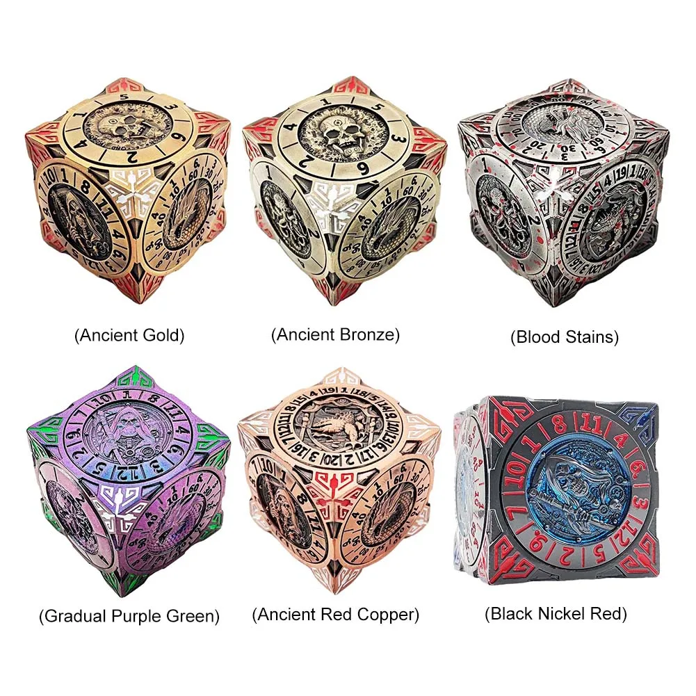 1. Diseño versátil:Los dados mecánicos de metal siete en uno son imprescindibles para todos los entusiastas de los juegos de mesa, ya que les permite embarcarse en nuevas aventuras.Funciona como D4, D6, D8, D10, D12, D20, con D10/D100 compartiendo una cara, todo dentro de un creativo juego de mesa de dados.