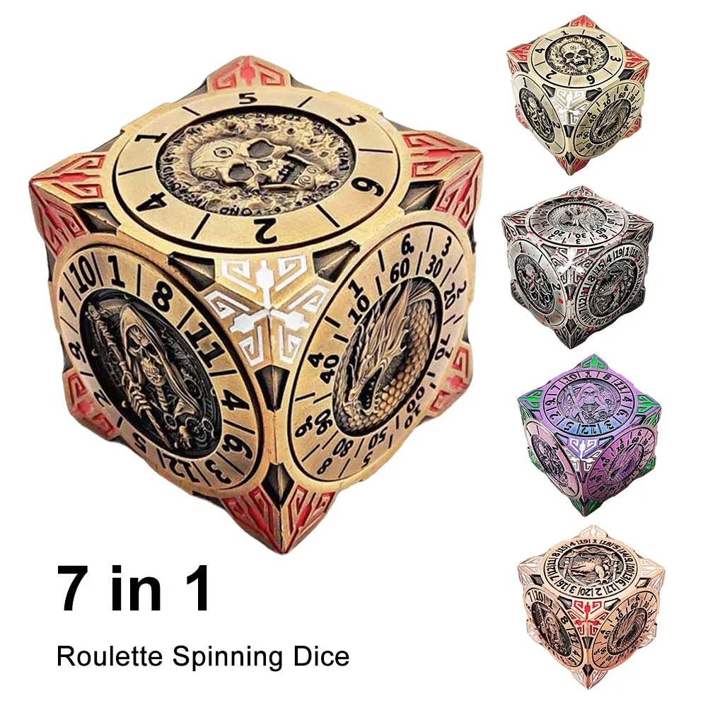 Comprar Dados mecánicos de Metal 7 en 1, resistentes al desgaste, ruleta, dados giratorios, juegos de mesa para mazmorras y dragones, RPG