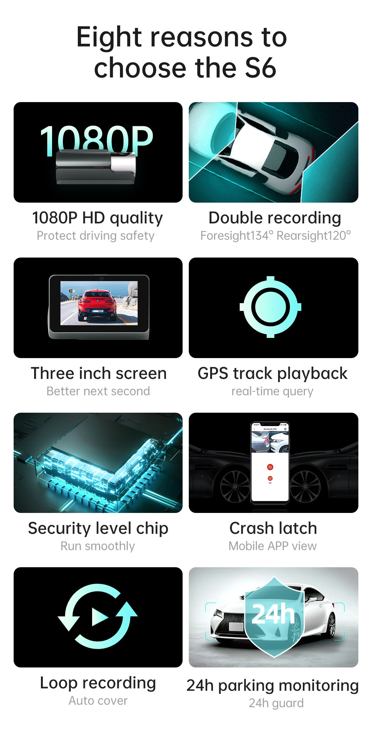 Comprar Dahua S6 Dash Cam 1080P WiFi pantalla táctil frontal y trasera lente Dual aplicación Control de voz grabación en bucle pestillo de choque para cámara de salpicadero de coche