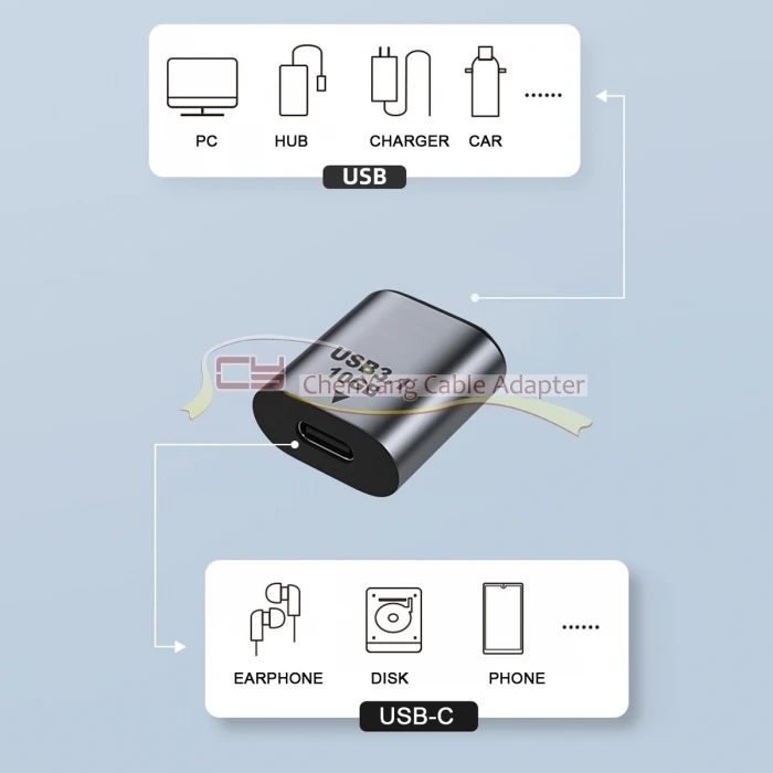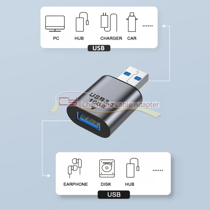 USB3.0 hembra/USB 3,0 3,1 adaptador macho 10Gbps potencia de datos para teléfono portátil tableta