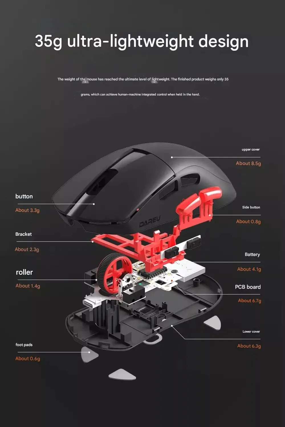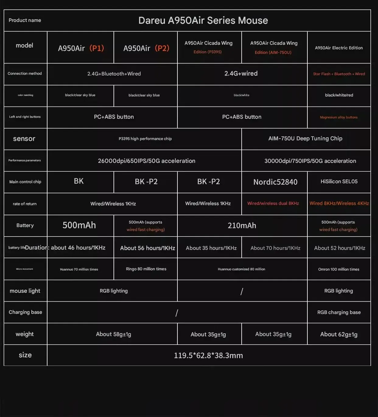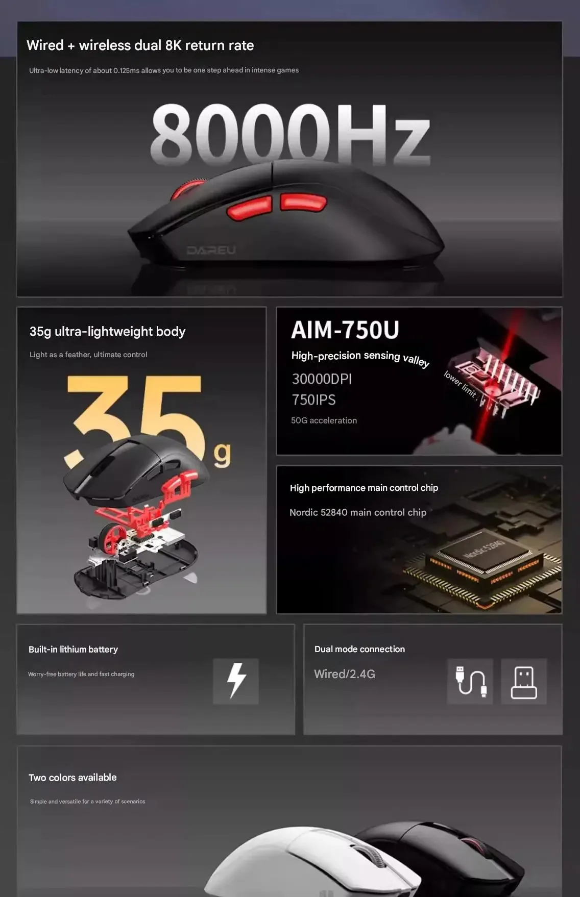 Dareu A950AIR Cicada Wing Edition Ratón inalámbrico de modo dual AIM-750U Ligero 3950 Nordic 52840 Ratón para juegos preciso