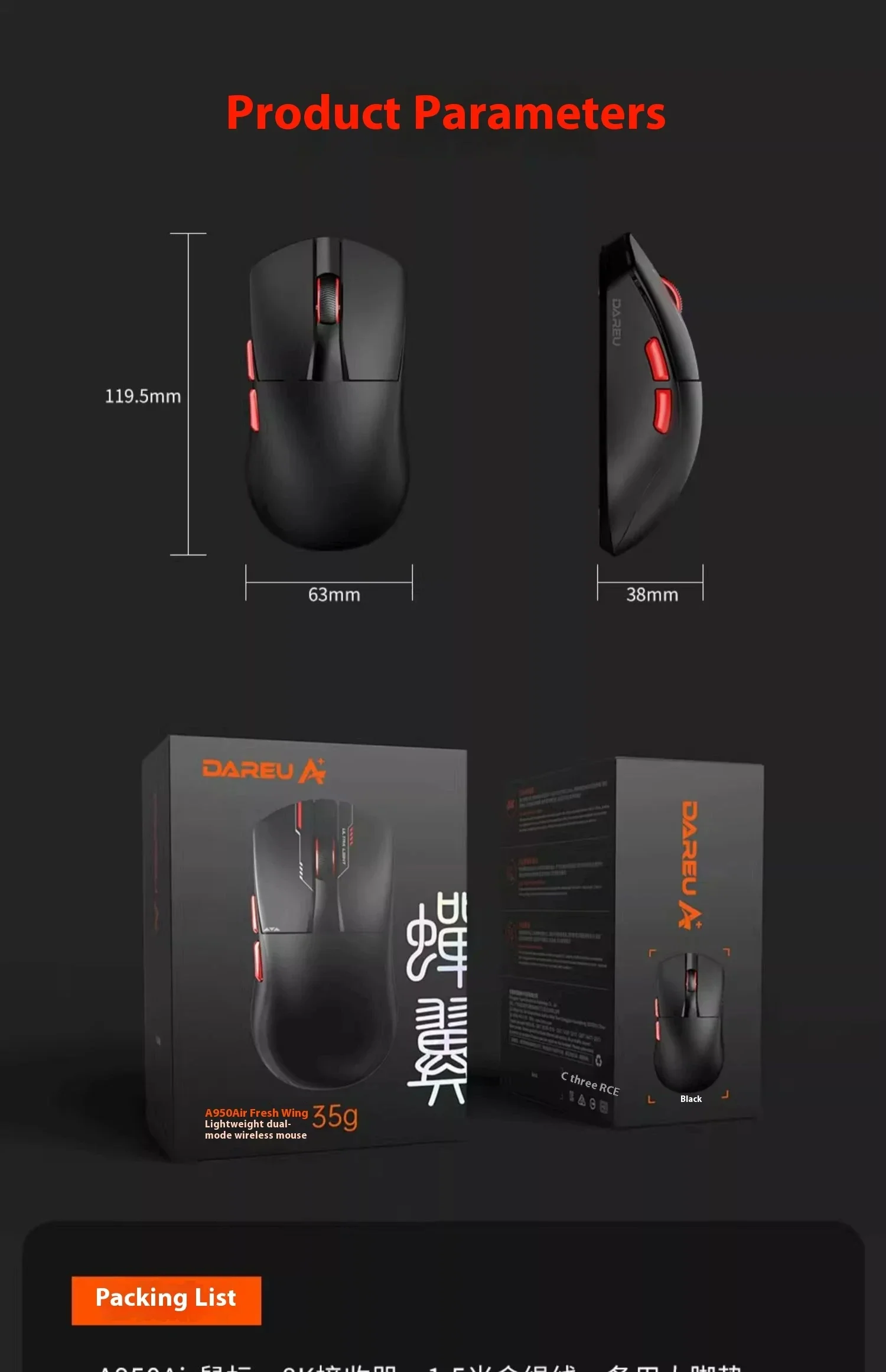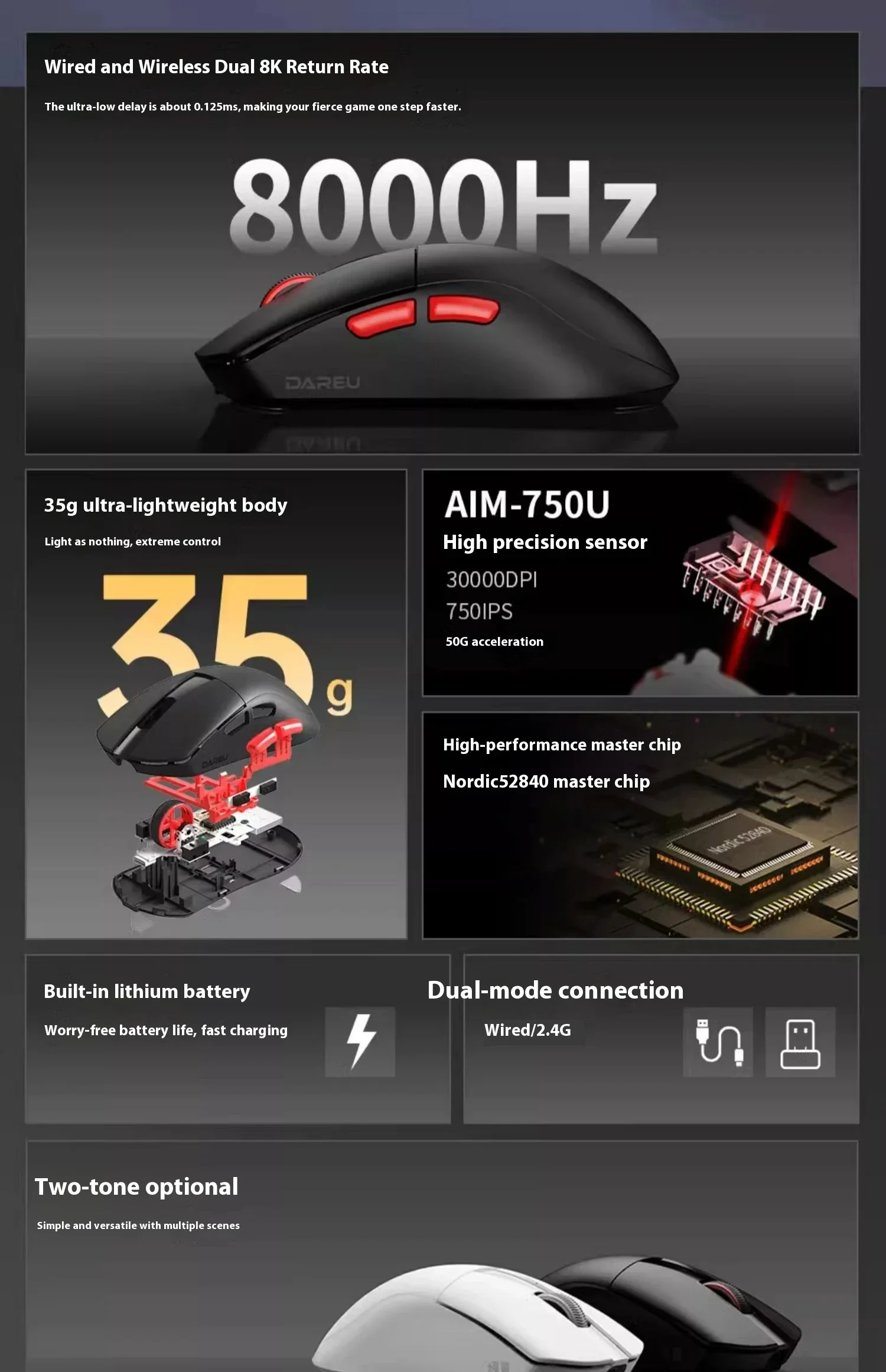 Comprar Dareu A950air cigarra alas ratón para juegos modo Dual inalámbrico Aim-750u Sensor 8k tasa de orolling personalizado ratón para juegos accesorio de Pc