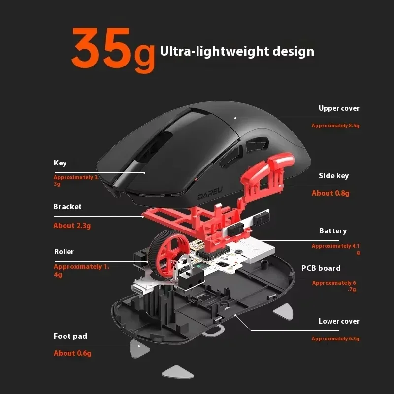 4. Diseño ultraligero de solo 35 g, lo que permite una experiencia de control de integración humana-máquina perfecta.