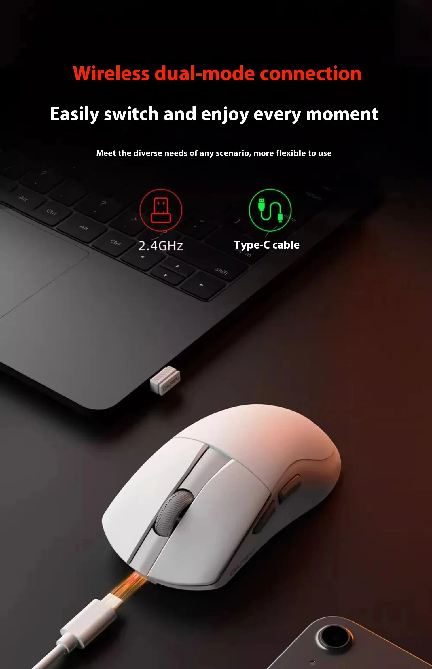 5. Batería de litio incorporada para una carga rápida y sin preocupaciones: duración de la batería sin problemas; Admite conexión de modo dual por cable/2.4G. 6. Dos colores disponibles, sencillos y versátiles para diversos escenarios.