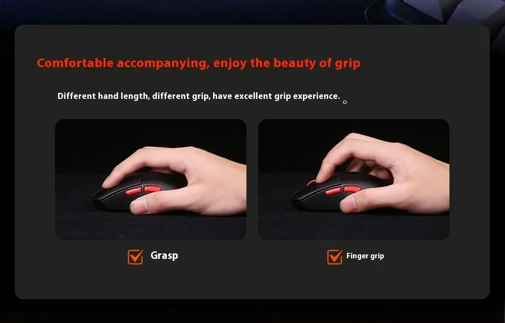 3. Diseño ergonómico con una forma cóncava en la cintura, estrecha y un cuerpo liviano de 35 g, lo que garantiza que no haya fatiga en la muñeca durante los juegos a largo plazo.
