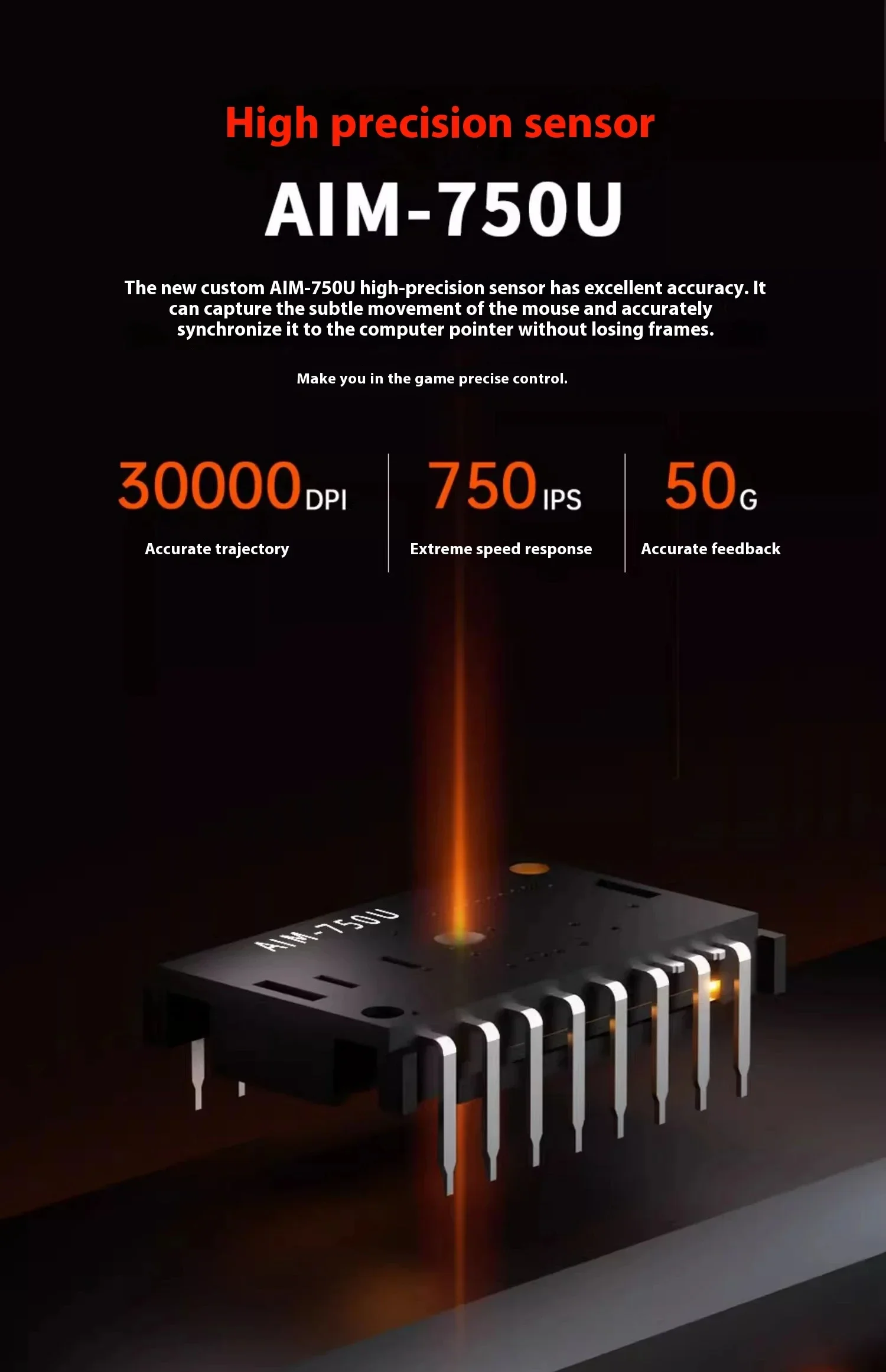 2. Viene con sensor de alta precisión AIM - 750U, con 30000 DPI, 750 IPS y 50G de aceleración.Puede capturar con precisión los movimientos del mouse sin perder fotogramas durante el juego.