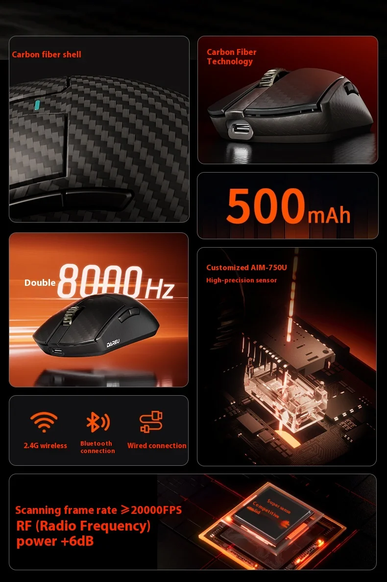 Dareu A950Ultra Esports Mouse Tri-modo inalámbrico de fibra de carbono
