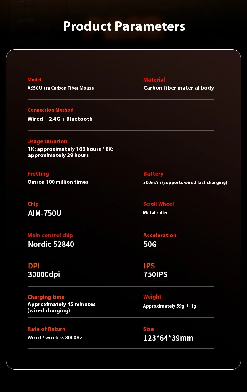 Modelo: ratón A950Ultra de fibra de carbono
