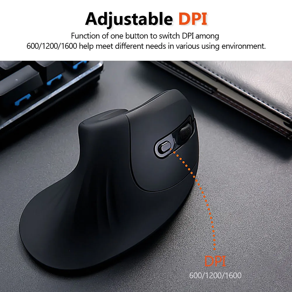 Ratón óptico ergonómico vertical inalámbrico de 2,4G, 600/1200/1600 DPI, seis botones es una buena opción para mouse de computadora, jugadores y otras actividades de red.Especialmente la funcionalidad "Page Back" y "Page Forward".