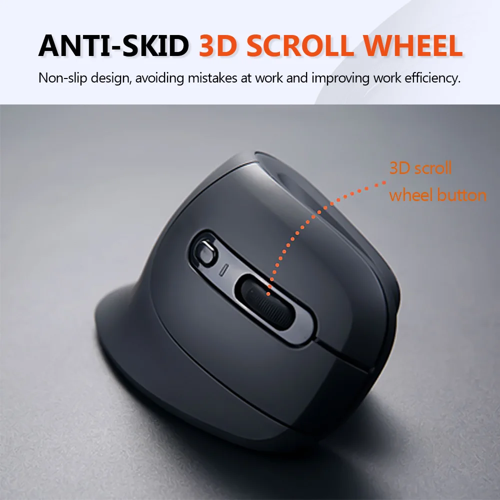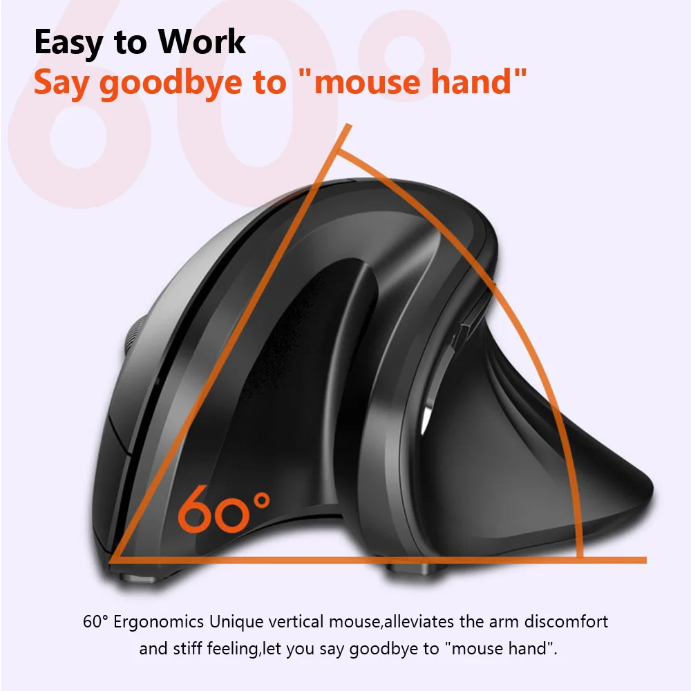 Diseño ergonómico.La forma ergonómica única sostiene la palma, con un innovador diseño vertical que mantiene la mano y el brazo en una posición natural y cómoda del ratón.Reduce eficazmente la tensión y el dolor de la muñeca en comparación con un mouse tradicional.