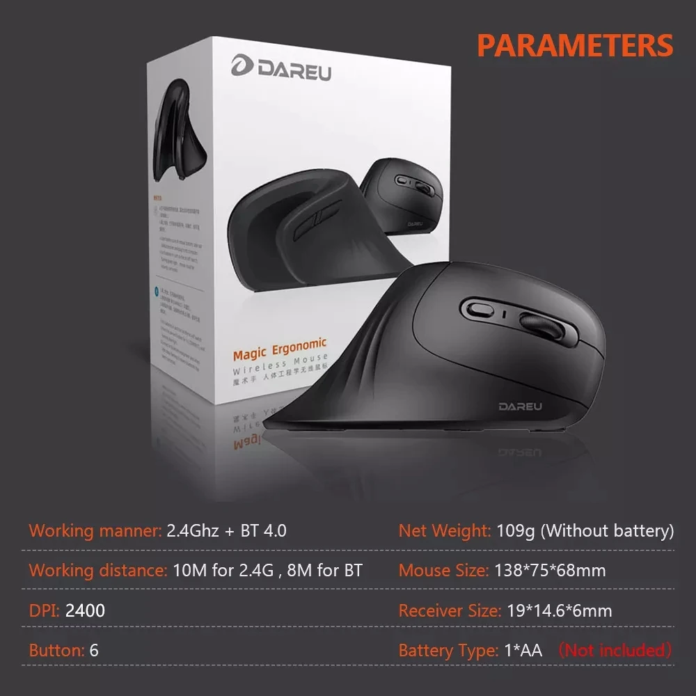 Comprar DAREU Bluetooth 2,4G ratón inalámbrico silencioso modo Dual ergonómico ratón para juegos silencioso para PC Macbook portátil Gamer