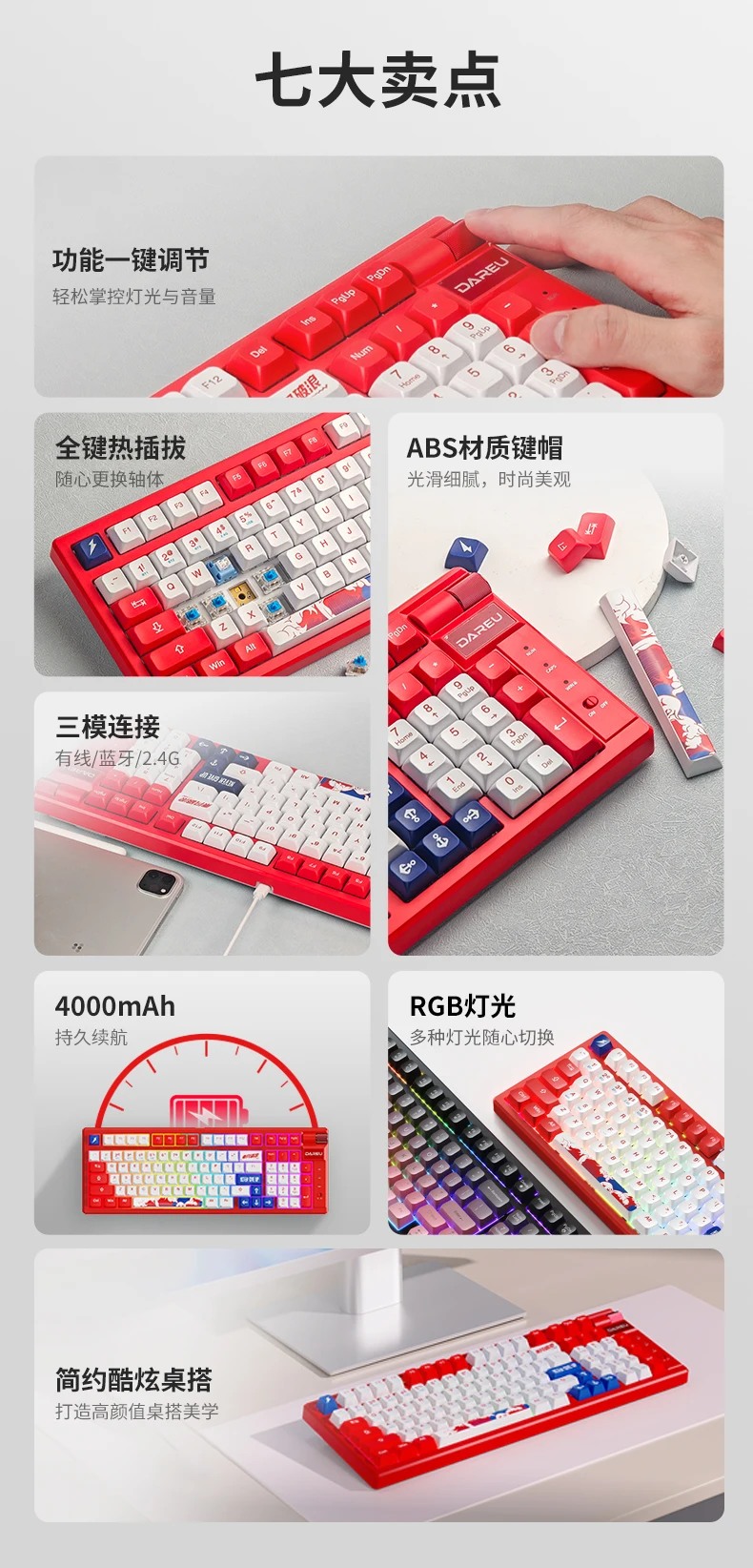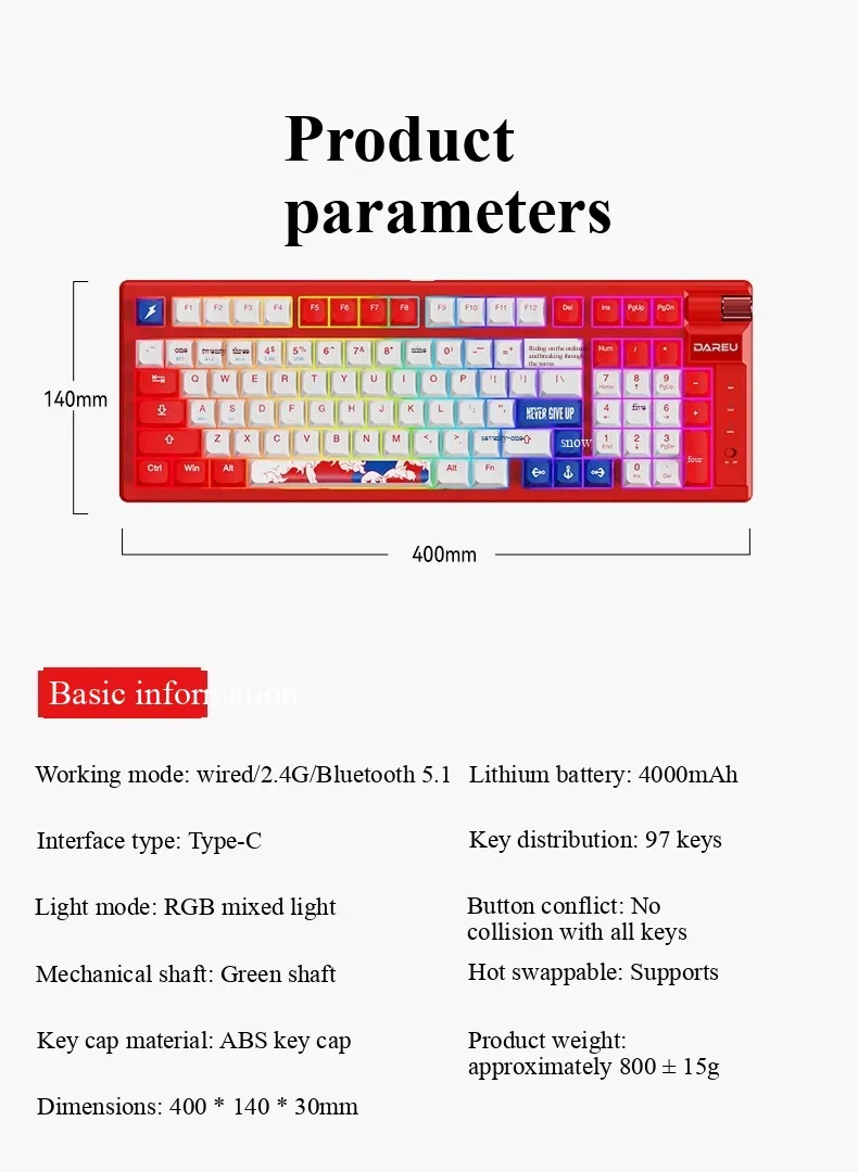Comprar DAREU LK98pro Teclado mecánico 3 modos inalámbrico Bluetooth teclado mecánico personalizado tecla completa enchufe caliente Esports juego Oficina