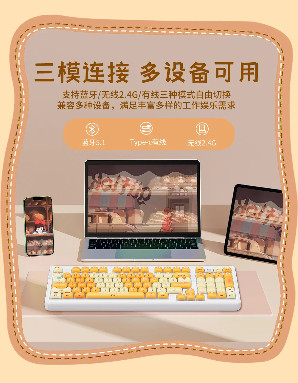 Comprar DAREU Mantou Teclado mecánico 3 modos inalámbrico Hot Plug RGB Teclado mecánico alta belleza linda chica juego de oficina regalo