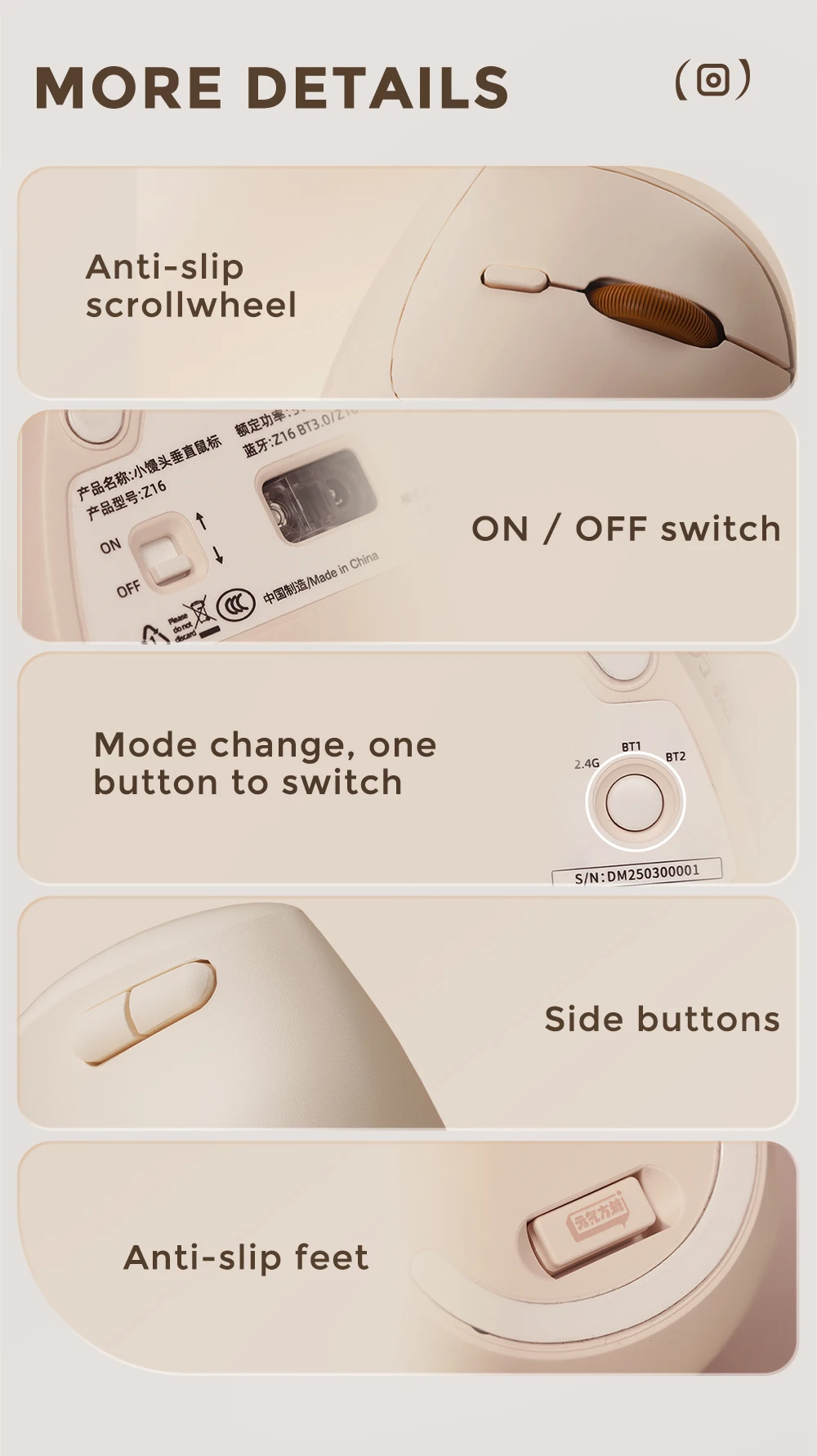 Comprar DAREU Mini Ratón Vertical ergonómico 2.4G USB Bluetooth Ratones Ópticos Inalámbricos 3 DPI Ajustable 1000,1600,2400 para Manos Pequeños