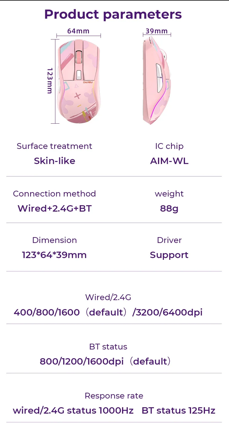 Comprar DAREU-ratón inalámbrico Bluetooth para juegos, Mouse trimodo, conectar con cable con Base de carga, botones KBS, Mous para computadora portátil, PC, Gamer