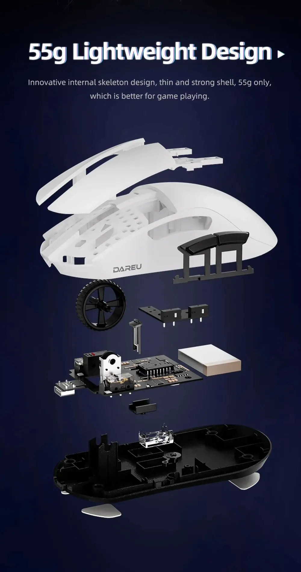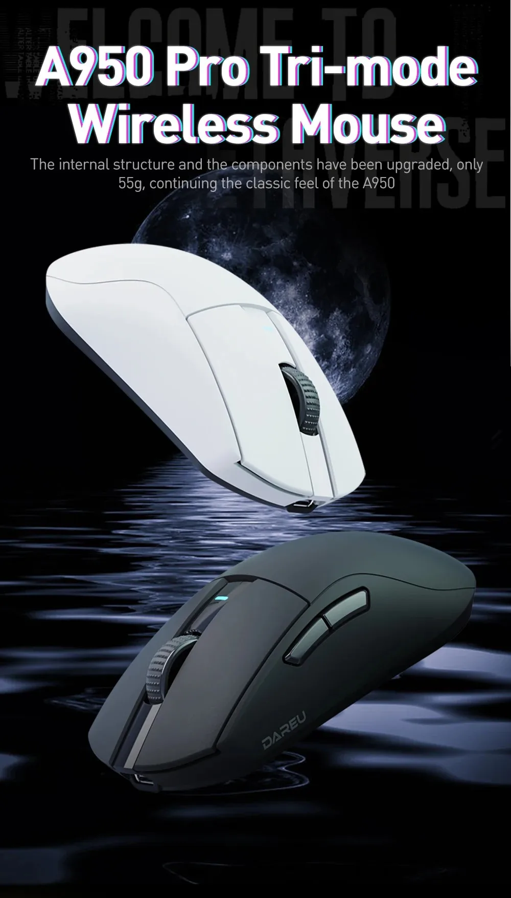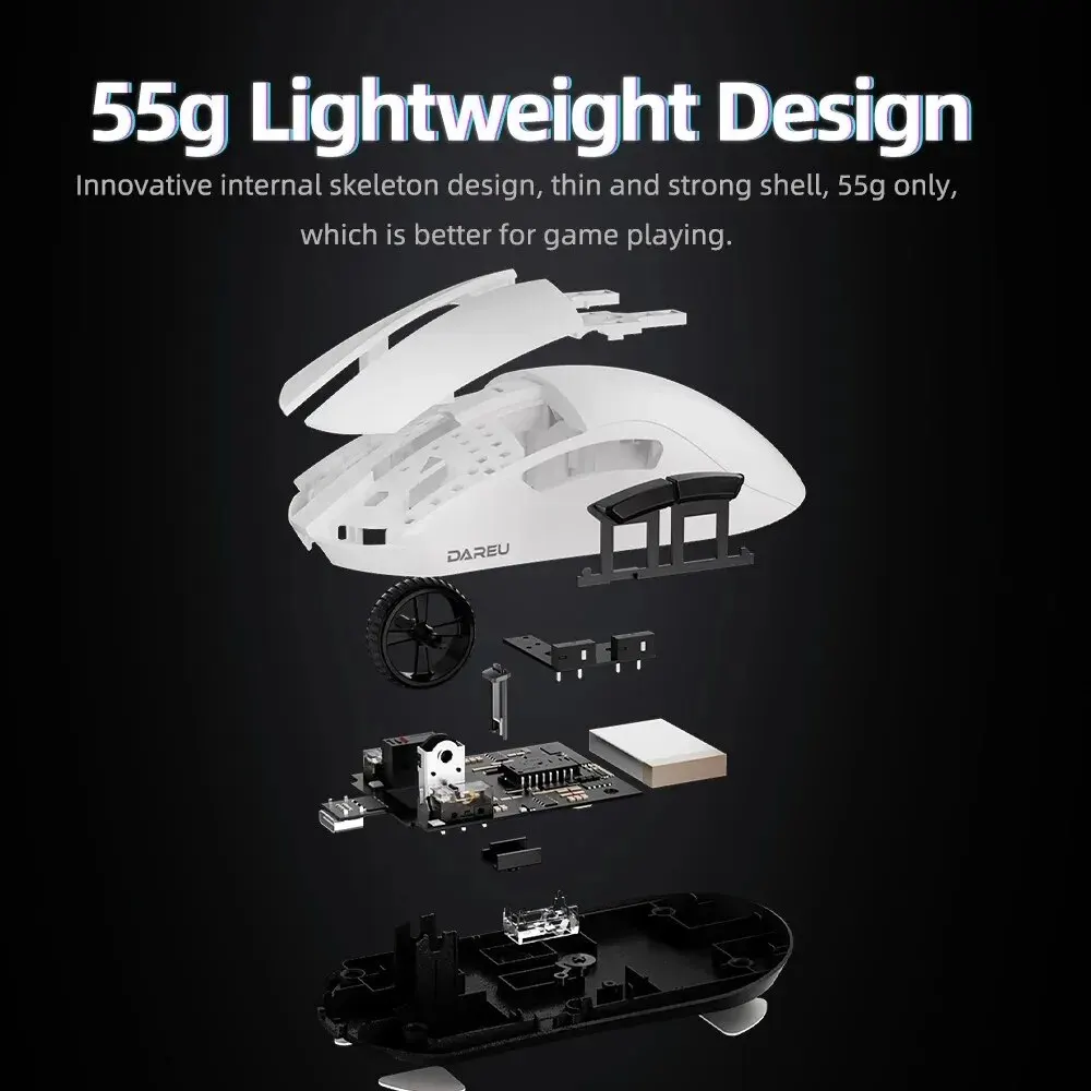 Comprar DAREU-ratón PBT inalámbrico con cable, 4KHz, trimododo, 2,4G, PAW3395, 26000 DPI, RGB, 6 botones programables, recargable para PC, portátil y Gamer