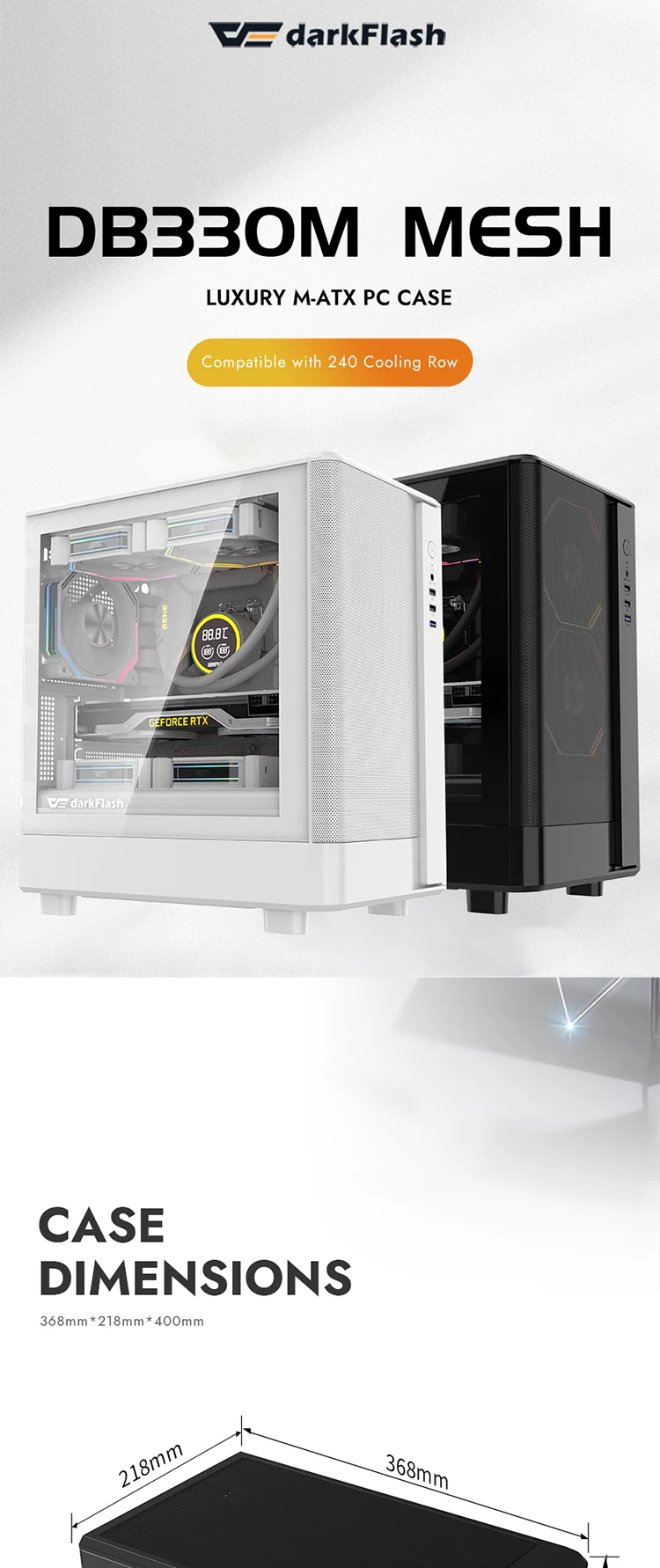 Caja de PC Darkflash DB330M MESH M-ATX USB3.0 compatible con 240 gabinete de jugador refrigerado por agua cubierta de computadora de vidrio transparente