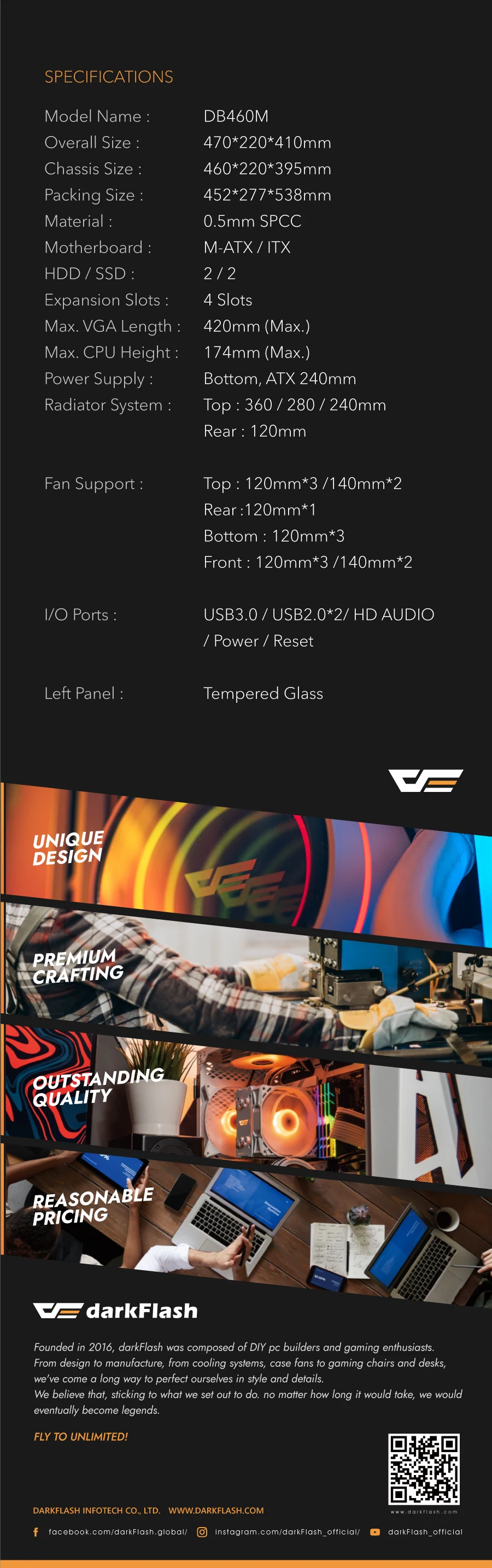 Caja para PC Darkflash DB460M, Panel lateral de vidrio templado USB3.0, chasis para juegos de ordenador M-ATX, compatible con gabinete para jugadores con refrigeración por agua de 360mm