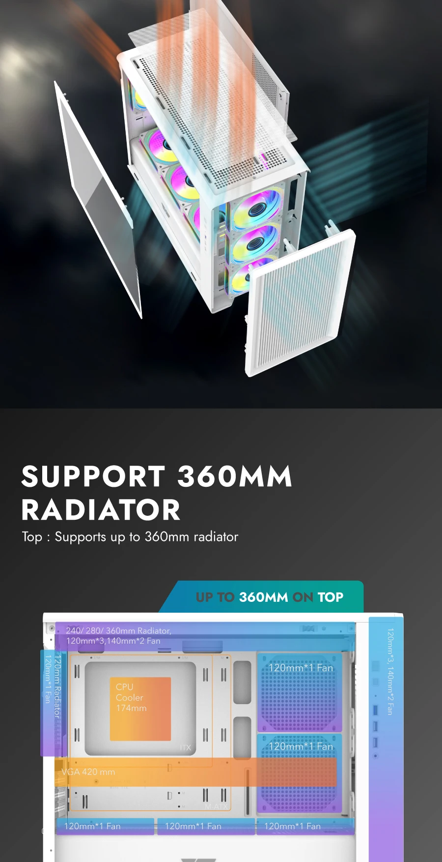 (2) Admite ventiladores de hasta 120 mm * 12/140 mm * 4 y radiador de 360 mm