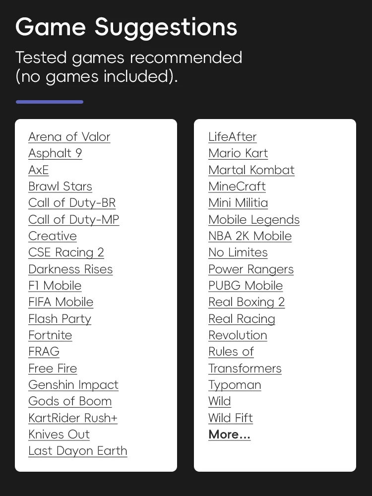 Proporciona una lista seleccionada de juegos probados y compatibles para la mejor experiencia de juego.(Nota: el controlador y su aplicación no incluyen ningún contenido de juego).