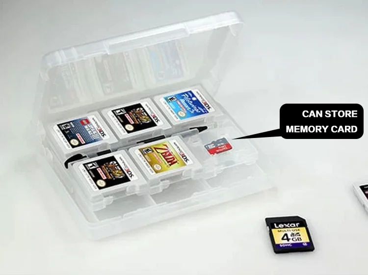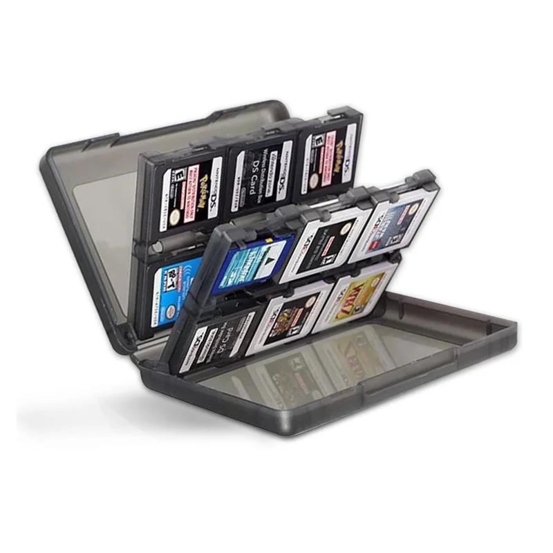 Almacene y organice fácilmente hasta 24 tarjetas de juego Nintendo; Incluye ranuras para 2 tarjetas SD. Ofreciendo una comodidad sencilla, los prácticos soportes para cartuchos del estuche contienen perfectamente las tarjetas de juego y facilitan su colocación y extracción según sea necesario.
