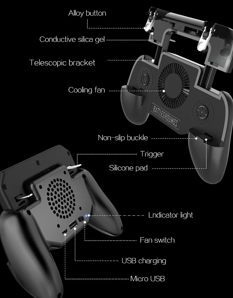 Comprar DATA FROG-agarre para juegos con cargador portátil, ventilador de refrigeración para PUBG, controlador móvil L1R1, Joystick de gatillo de juego móvil para teléfono