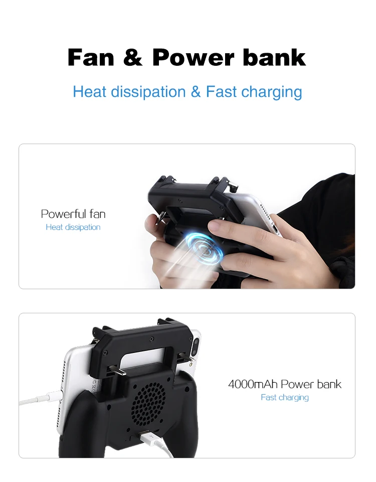 Combina disparadores de juegos, gamepads, energía móvil y ventiladores de refrigeración del teléfono.