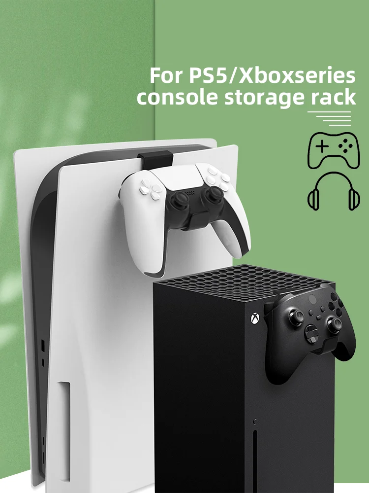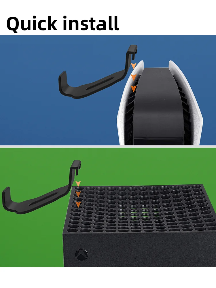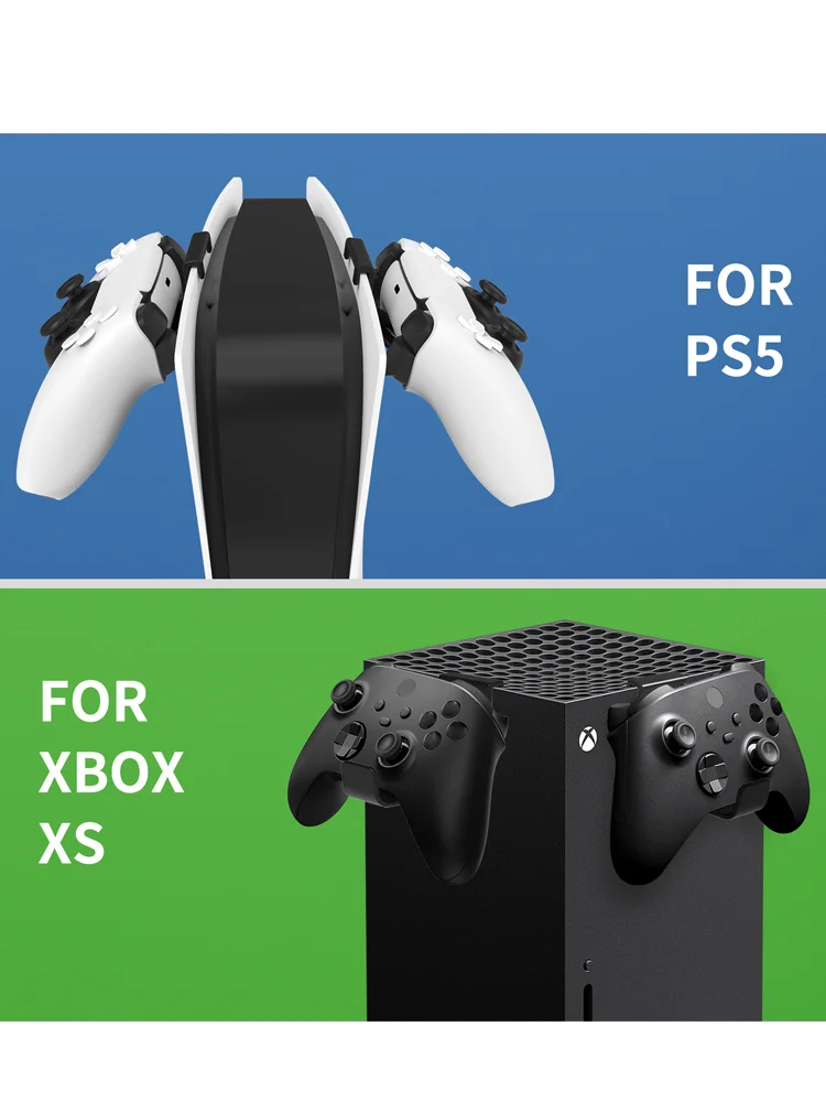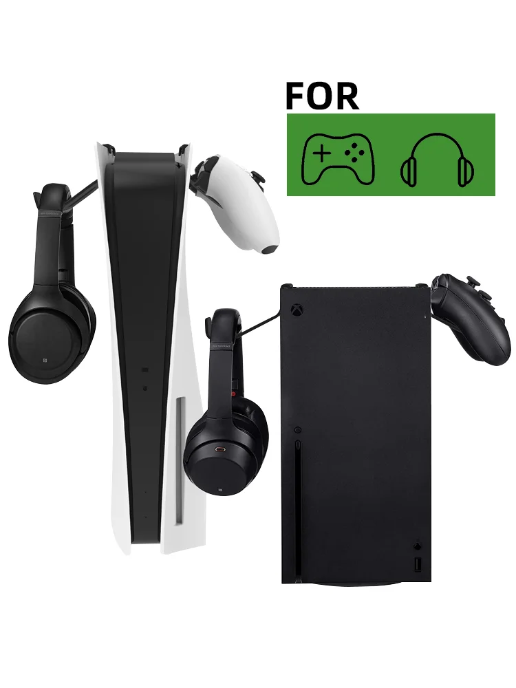 Se ajusta a la mayoría de los controladores y auriculares, Compatible con los controladores PS5 y Xbox Series X, sus controladores PS5 y XBOX Series X pueden colgar sobre la consola firmemente, sin tornillos y ahorrando espacio.