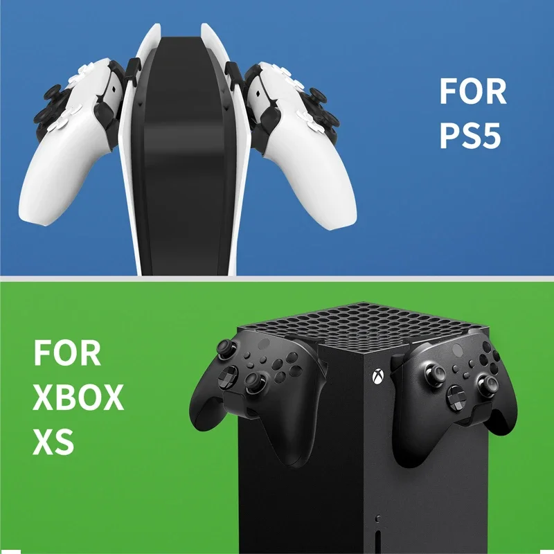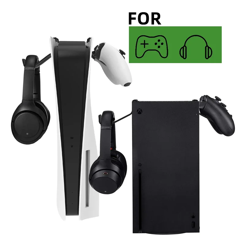 Se ajusta a la mayoría de los controladores y auriculares, Compatible con los controladores PS5 y Xbox Series X, sus controladores PS5 y XBOX Series X pueden colgar sobre la consola firmemente, sin tornillos y ahorrando espacio.