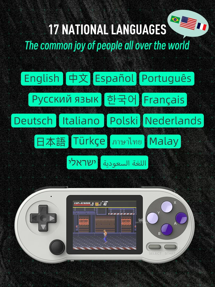 Hemos agregado 17 idiomas a la página de menú de la consola de juegos, ¡y siempre hay un idioma que te conviene!