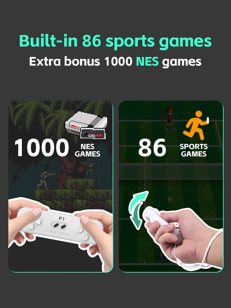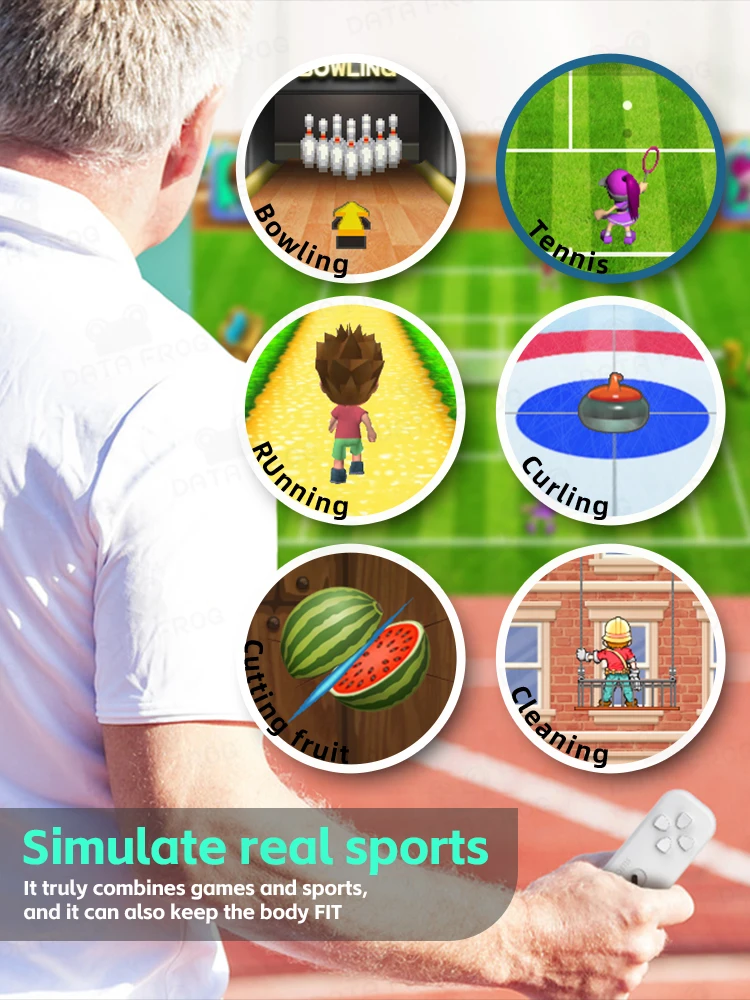 Esta es una consola de juegos con somatosensorial interactivo. Puede permitirle relajar su cuerpo. Por Ejemplo: jugando al fútbol, ¡puede lograr la función de jugar juegos agitando el GamePad para impulsar el movimiento de su cuerpo! Cuando juegas, puedes experimentar la alegría del juego y ejercitar tu cuerpo para evitar problemas de columna causados por estar sentado durante mucho tiempo.