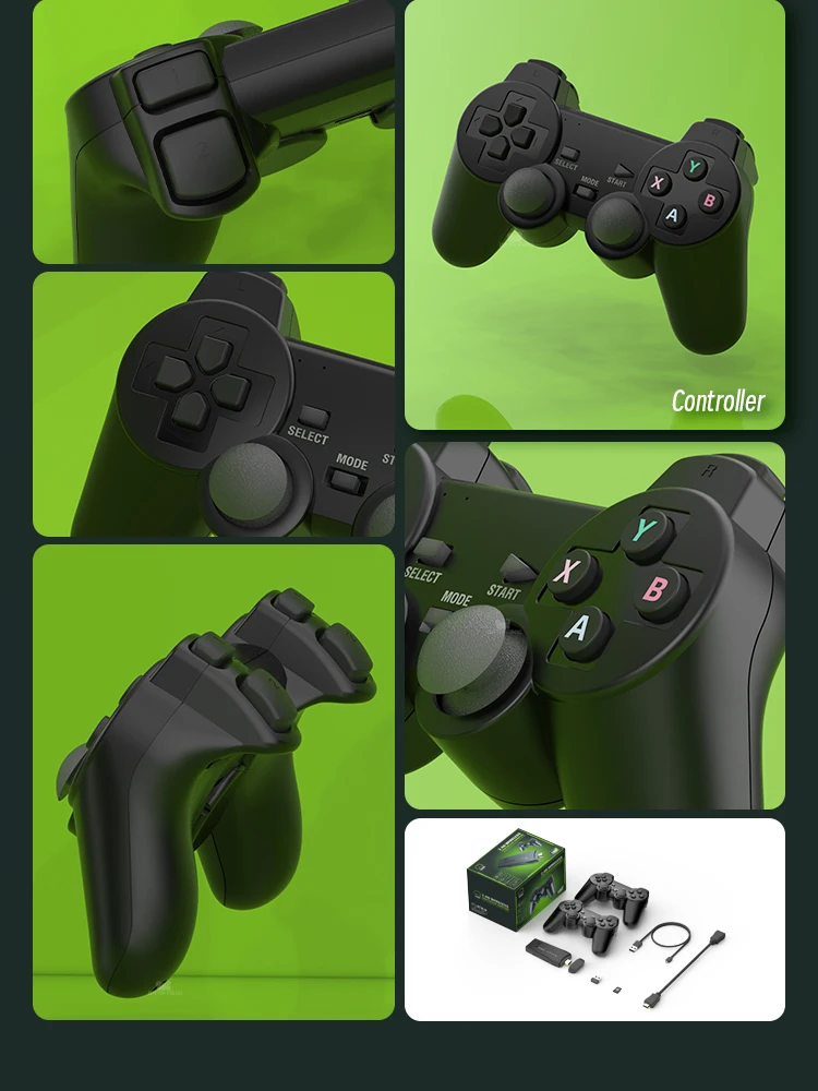 Equipado con dos controladores de juegos de TV inalámbricos de 2,4 Ghz. Soporta hasta 4 jugadores al mismo tiempo, puedes controlar de forma remota y disfrutar del juego en el sofá con tu familia o amigos.