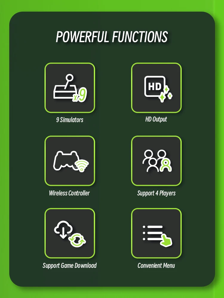 • Más de 20000 juegos:Con una biblioteca de más de 20000 juegos, esta consola garantiza entretenimiento sin fin. Descubre Nuevos juegos o revivir tus clásicos favoritos.