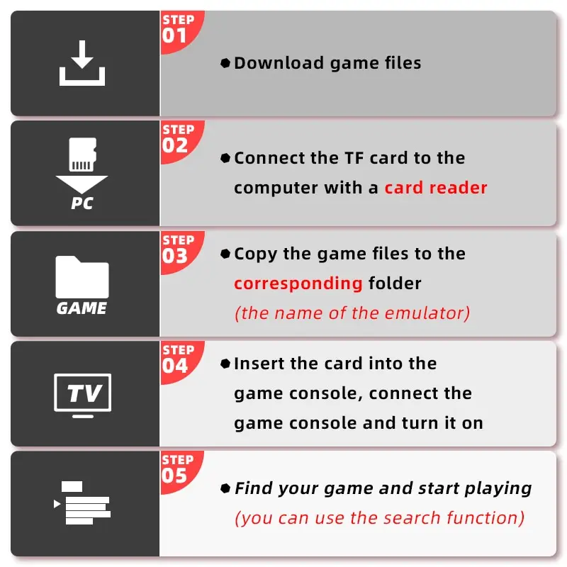 Con chip de CPU GB2 mejorado, la consola de juegos Game Stick 4K TV está incorporada en más de 9 emuladores, compatible para MAME, PS1, GB, GBA, GBC, MD, SFC, juegos de formato FC y ATARI, que puede descargar y guardar en su tarjeta de memoria;