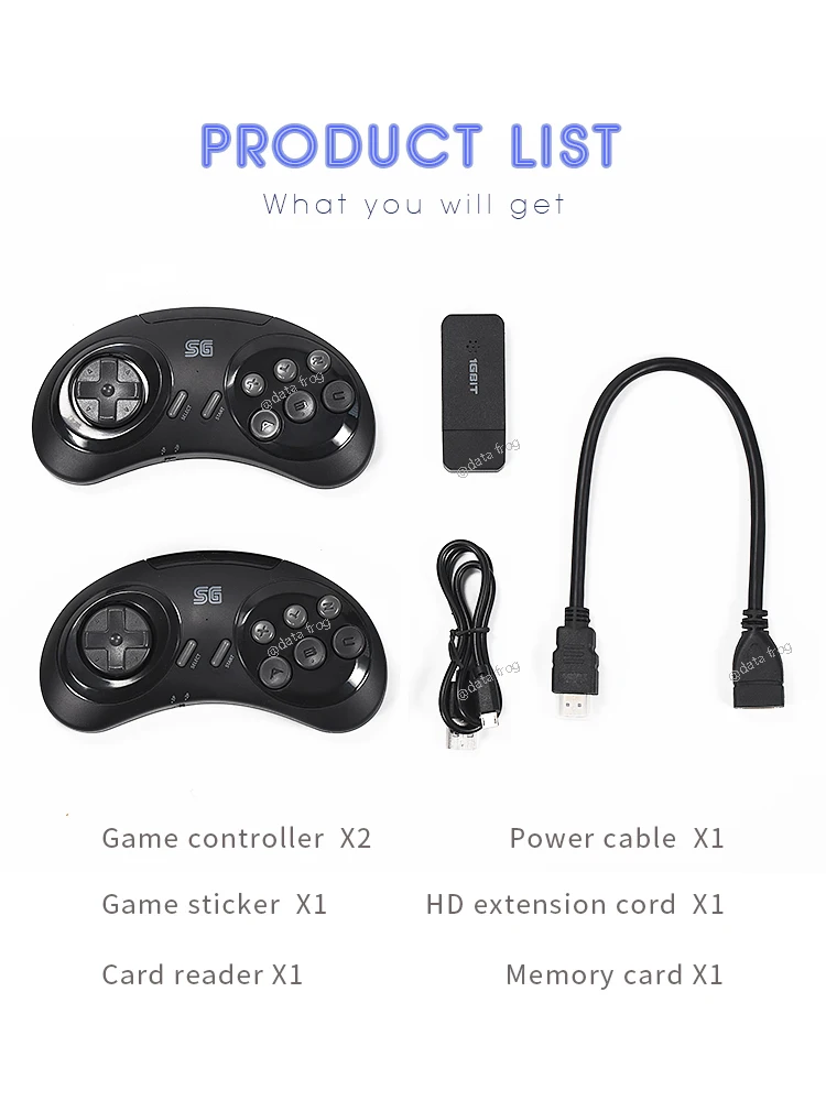 Comprar DATA FROG-consola de videojuegos Retro inalámbrica, dispositivo de 16 bits para Sega Genesis, compatible con HDMI, juegos para más de 900 SEGA/FC