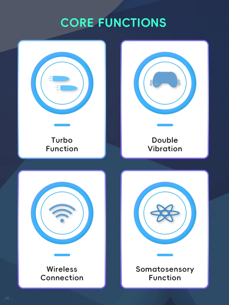 Para lograr un control preciso de detección de movimiento, mejorando su experiencia de juego y permitiéndole sumergirse en el juego. Ajuste el modo de vibración con un solo clic para adaptarse a su preferencia. Los agarres rediseñados evitan que las manos se cansen después de jugar durante mucho tiempo. El diseño antideslizante evita que te preocupes por las palmas sudorosas.