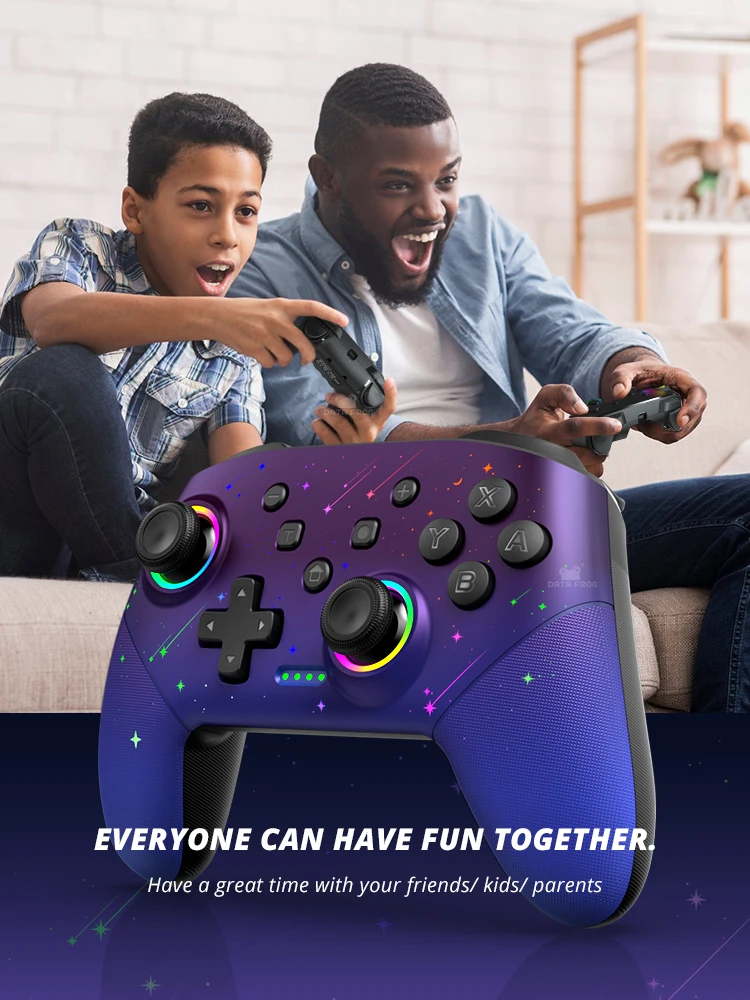 Los joysticks de nuestro controlador de interruptor inalámbrico están diseñados con luz de 8 colores y 1 luz LED RGB de arco iris. El cambio de tres modos de iluminación le brinda una experiencia de juego diferente.