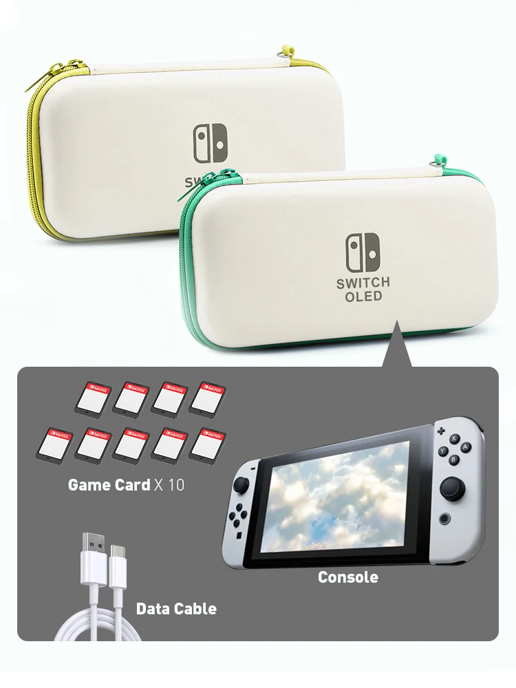 Equipado con 10 ranuras para tarjetas de juego, especialmente diseñadas para Nintendo Switch OLED, proporciona espacio de almacenamiento seguro para algunos accesorios OLED compatibles pequeños de Nintendo Switch como cargador pequeño, cable de carga, Banco de energía Delgado, auriculares y otros accesorios, manteniendo todos los artículos almacenados ordenadamente.