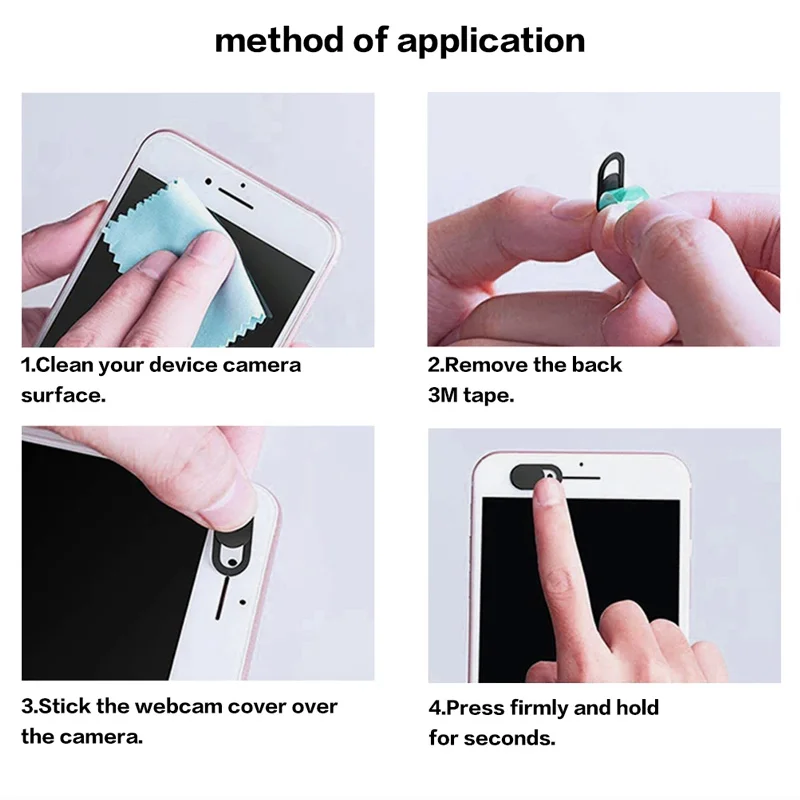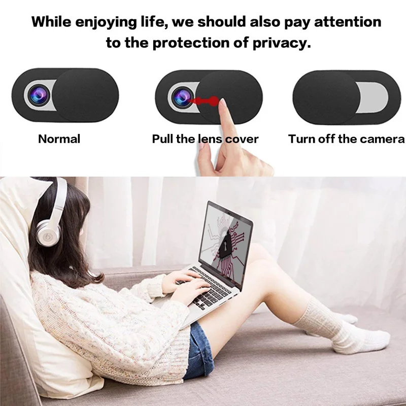 Nuestra cubierta para cámara web se puede abrir o cerrar con solo un simple movimiento del dedo.El adhesivo se puede aplicar y quitar fácilmente del dispositivo sin dejar rastros.