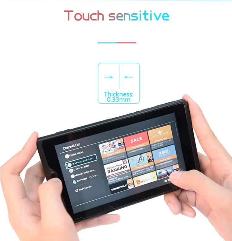 Para lograr una mejor calidad, utilizamos una pieza entera de vidrio para cortar, el grosor desde el original de 0,8 mm hasta la corriente de 0,33 mm.Después de nuestras pruebas y cortes continuos, creemos que el grosor de 0,33 mm resalta mejor la sensibilidad de la pantalla táctil.Deje que la pantalla del controlador del cliente detecte rápida y fácilmente el toque del dedo, haciendo que el comprador sea más sensible y conveniente en la operación diaria.Estamos mejorando constantemente, permitimos que el comprador experimente mejor la fluidez del juego, ¡te brindamos más felicidad!