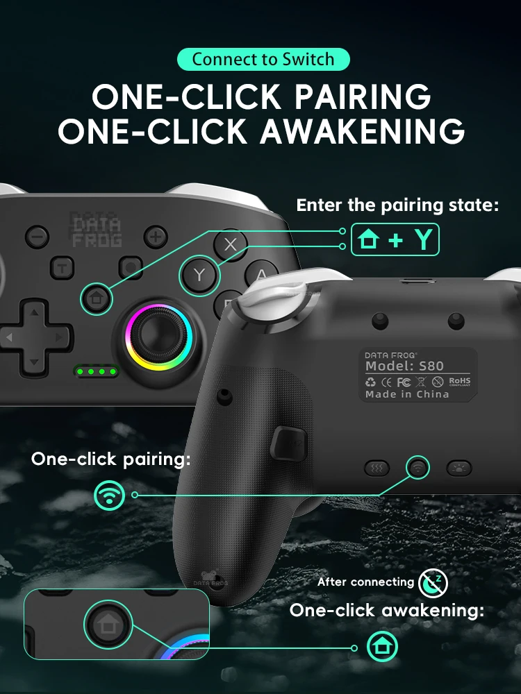 Los joysticks de nuestro controlador de interruptor inalámbrico están diseñados con luz de 8 colores y 1 luz LED RGB arcoíris.El cambio de tres modos de iluminación te ofrece una experiencia de juego diferente.