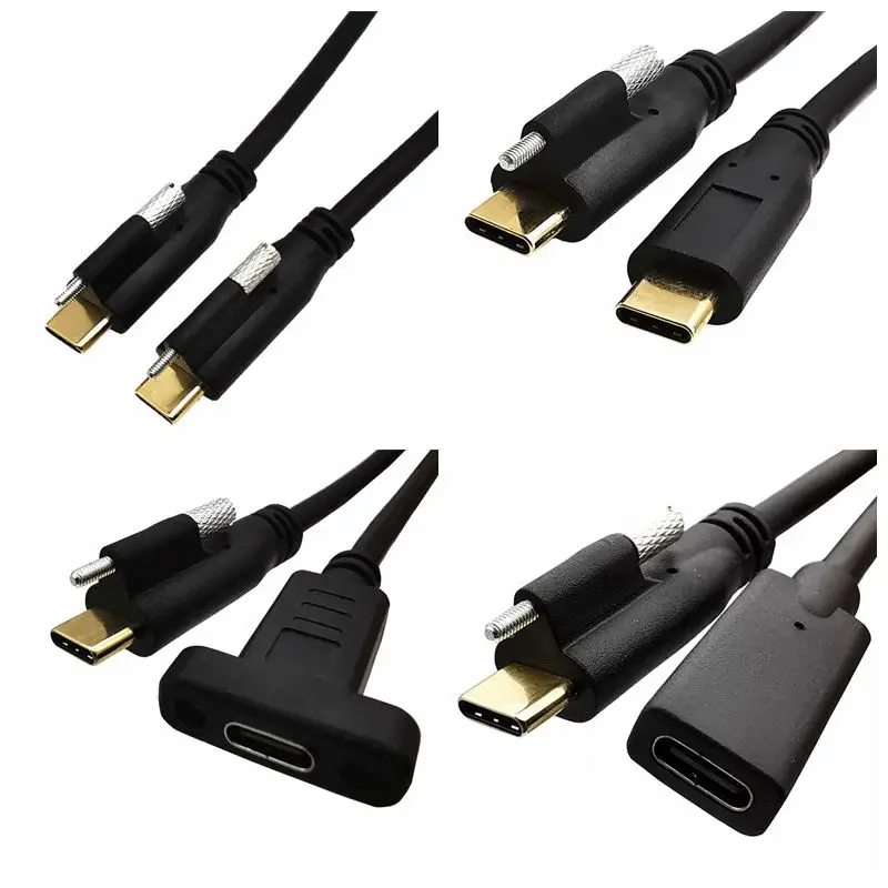 Chapado en oro 4K 60Hz 16 núcleos usb3.1 tipo C macho a hembra con tornillo 10gpbs línea de datos 5A 1m;