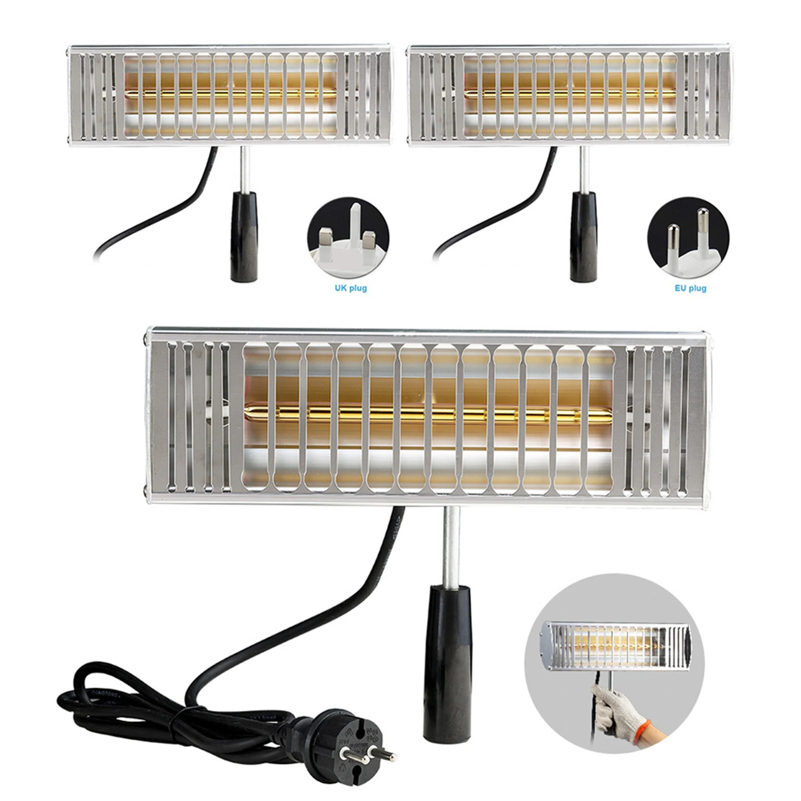 Comprar DATOU-Lámpara de pintura calefactora portátil, 1000W, luz para hornear carrocería de coche, curado de pintura infrarroja de onda corta con enchufe UE, EE. UU., Reino Unido