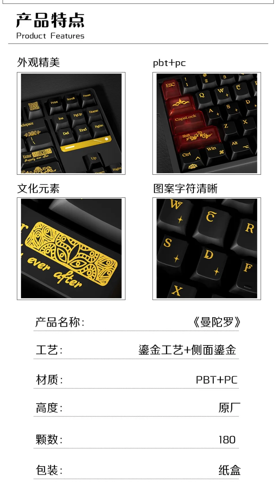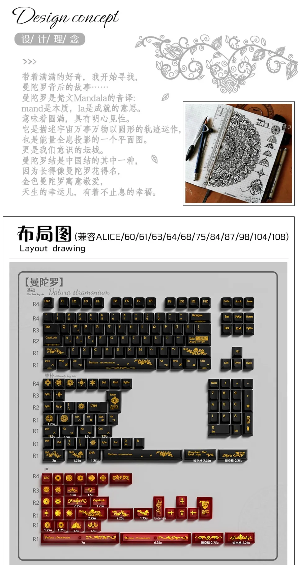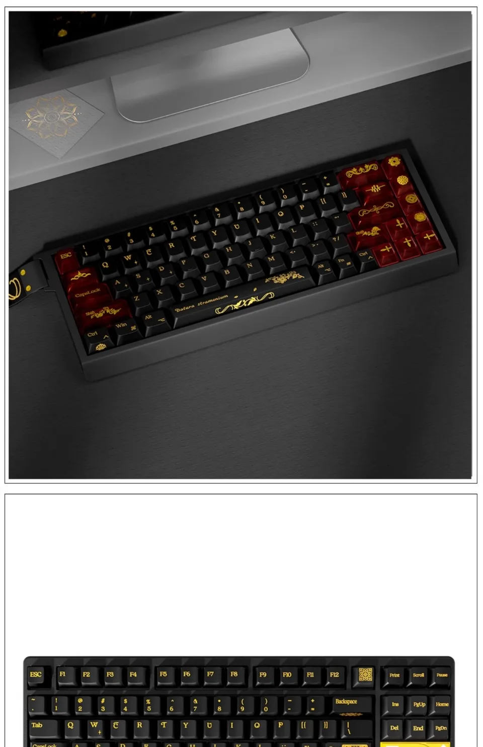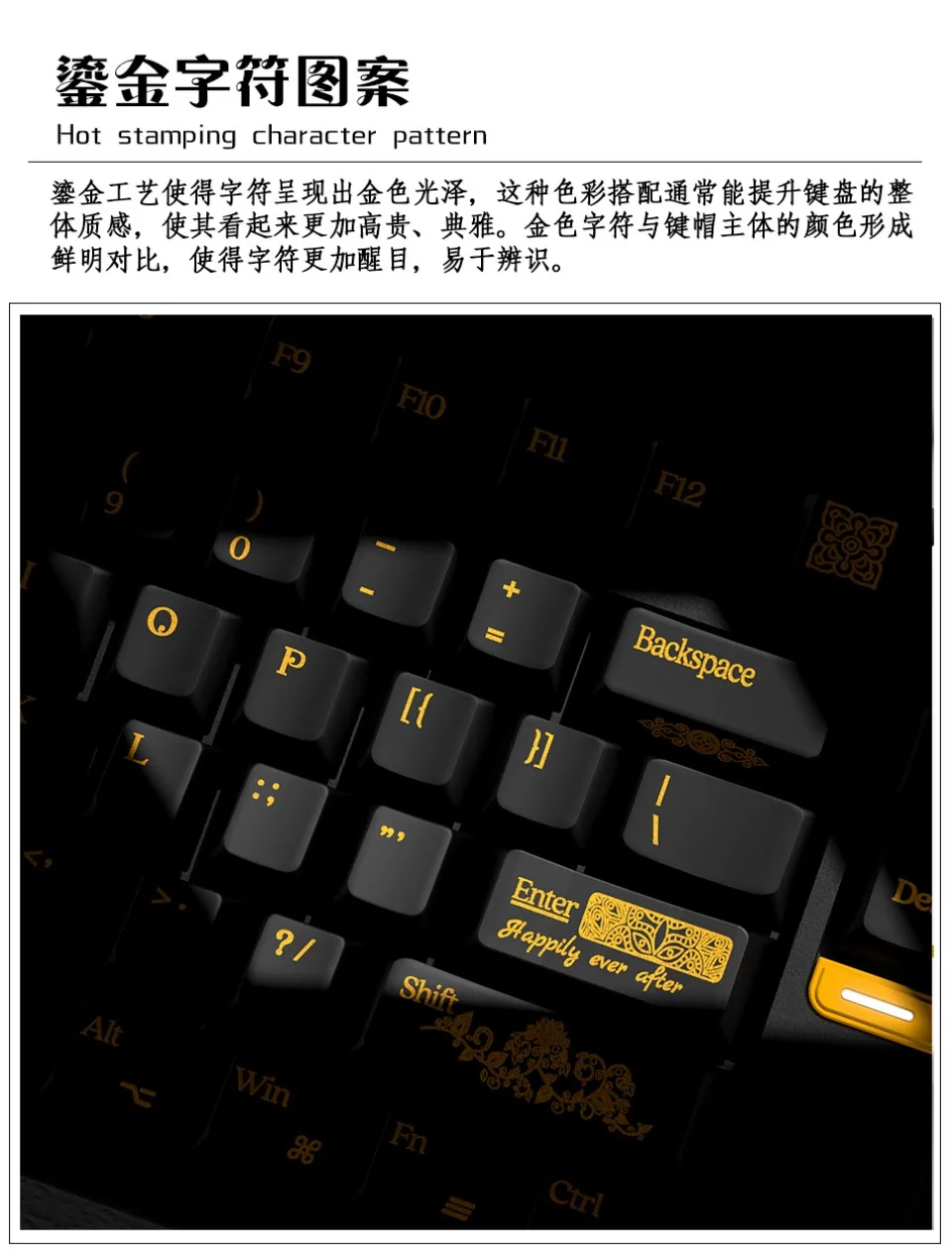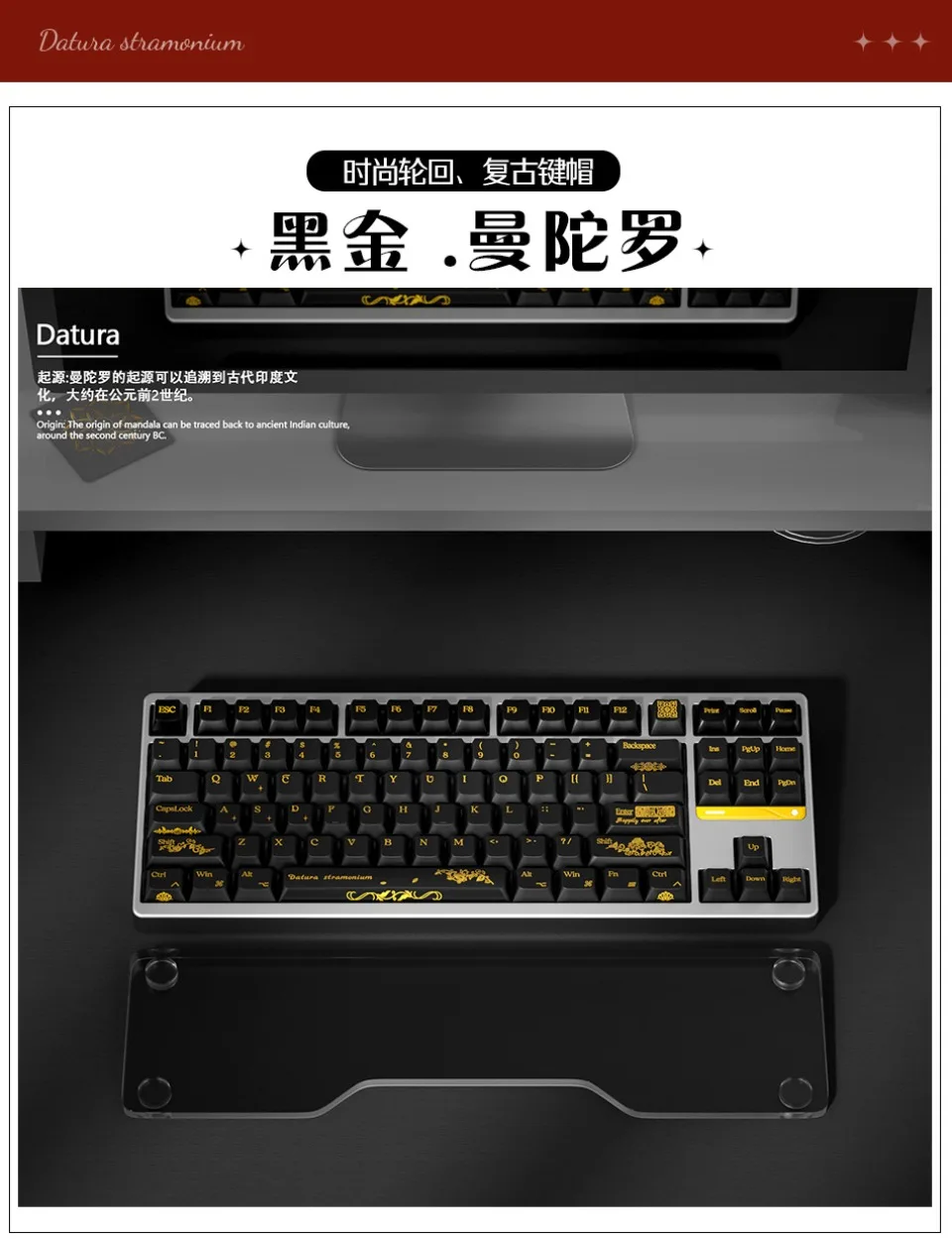 Datura Juego de teclas de oro negro 180 teclas PBT + PC tapa de teclado translúcida personalizada tapa de tecla de juego de perfil de cereza para teclado mecánico