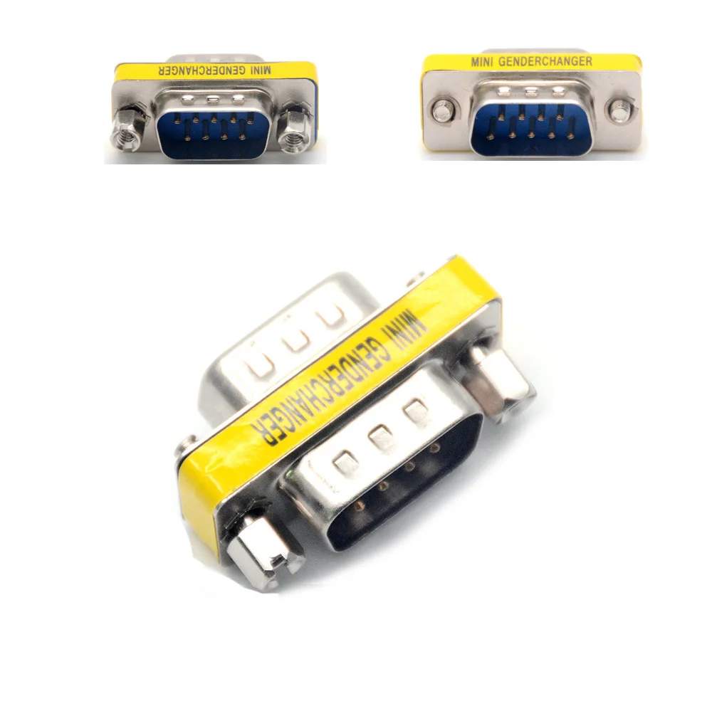 Comprar DB9 9Pin macho a macho Mini Gender Changer adaptador RS232 serie conector d-sub conectores