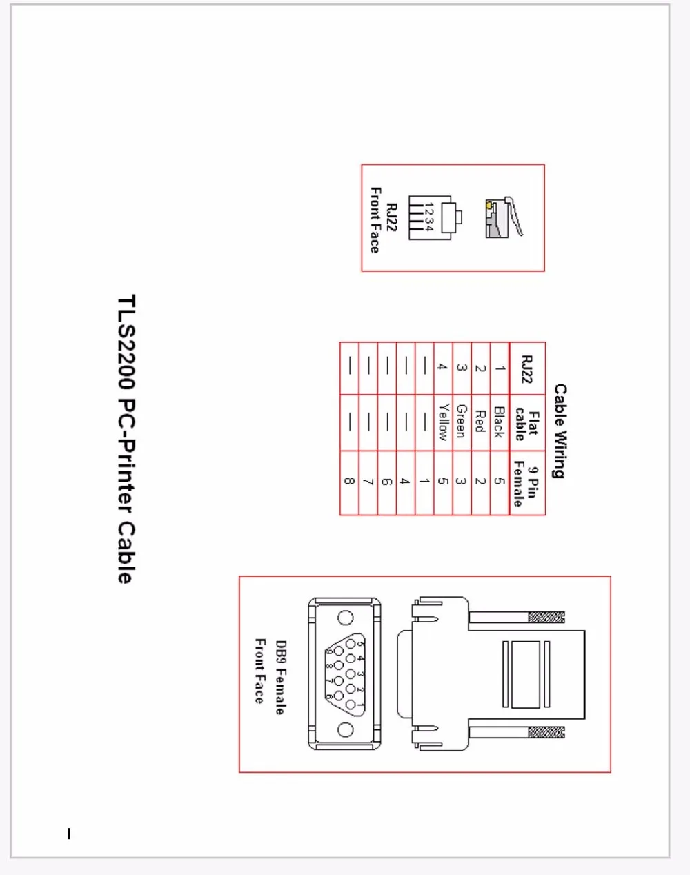 DB9 a RS232 Serial RJ22 Cable adaptador TLS2200 PC a Cable de impresora TLS2200 PC-Cable de impresora