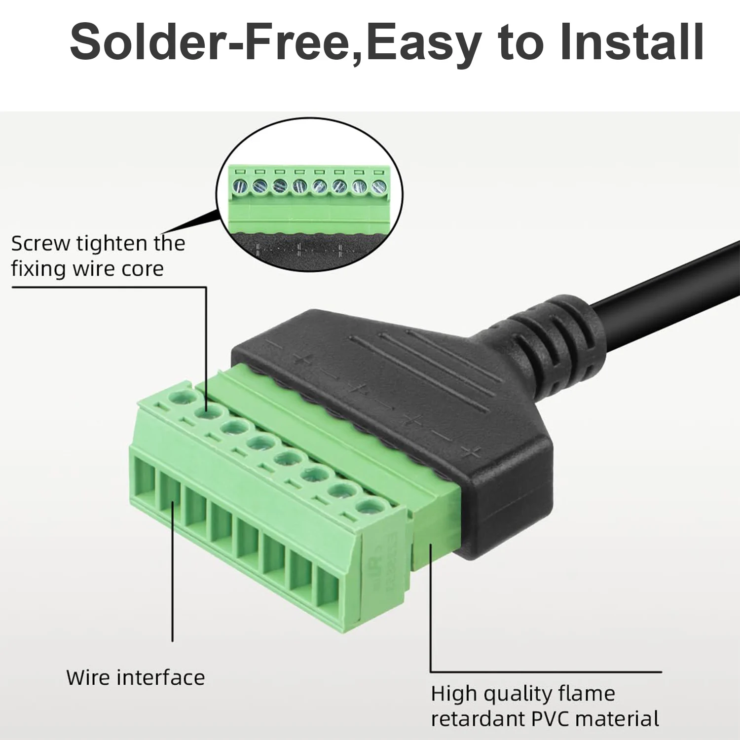 100% nuevo y de alta calidadCantidad: 1 Uds. Cable terminal + 1 Uds. Destornillador pequeñoDescripción:Cable de extensión de señal analógica con salida de tarjeta terminal sin soldadura DB9 a 8P.Se pueden conectar fácilmente a cables de longitud personalizada y se crean arreglos de pines personalizados para crear una conexión duradera para todas las aplicaciones.Conector A; DB9 RS232 macho/hembra de 9 pines; Conector B: Terminal sin soldadura de 8 pines.Longitud: 30CMMaterial: núcleo de cobre libre de oxígeno de alta calidad con blindaje de papel de aluminio, moldeo por inyección de plástico PVC.Color verdeAplicación del producto: dispositivos de interfaz DB232, a través del cable de red para ampliar el uso de computadoras host o dispositivos de visualización, como controladores CNC, motores, radios, cámaras de seguridad digitales, computadoras portátiles, decodificadores, máquinas de códigos de barras, PLC, PDA, POS, módems, paneles de control de impuestos, dispositivos seriales de red, instrumentos industriales, ingeniería de redes de vídeo multimedia KTV.Instrucciones del producto: Utilice este cable adaptador; se recomienda usarlo dentro de una distancia de 1 a 20 metros.Recordatorio del producto: este cable adaptador necesita un par para usar para lograr la función.Cantidad del paquete: 1 x DB9 macho o hembra a adaptador de terminal de tornillo de 8 pines; 1 destornillador de montaje.
