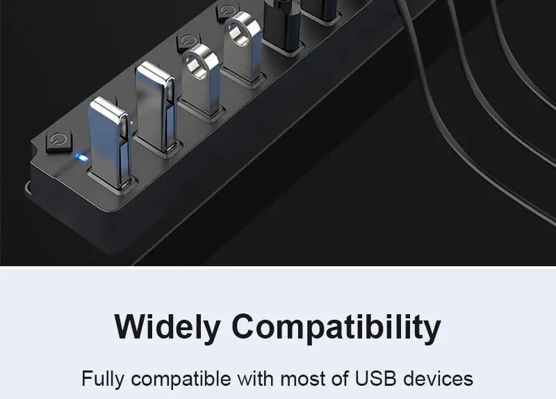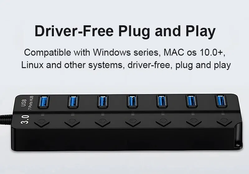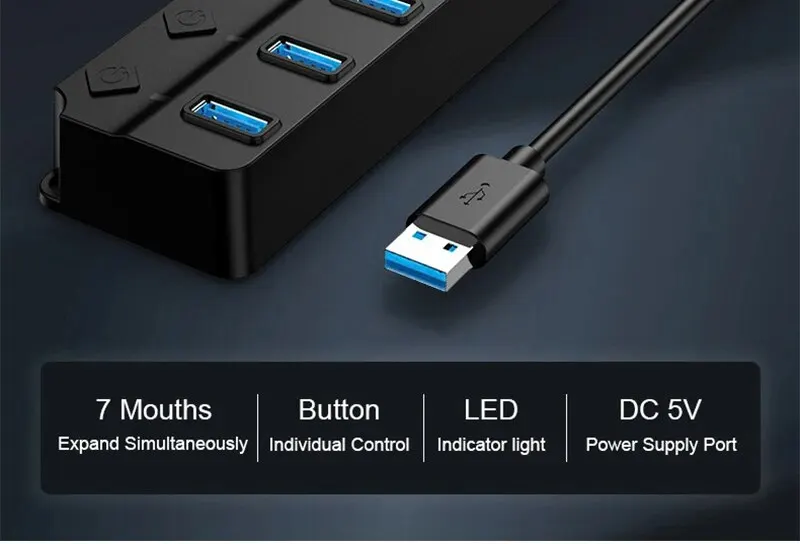 El concentrador USB DBIT 7-IN-1 es adecuado para conectar dispositivos USB como discos duros móviles, discos U, teléfonos móviles, cámaras digitales, teclados, ratones, tabletas, Etc. Apoya el uso simultáneo de 7 dispositivos USB, plug and play, ningún conductor requerido, permitiendo su más portátil y eficiente para el trabajo y la vida de cada día
