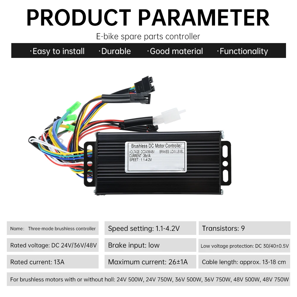 1x DC 24V/36/48V E-bike Sine Wave 26A 500/750W SM Three Mode Brushless Controller For Electric Bicycle Tricycle Electric Motorcycle Accessories
